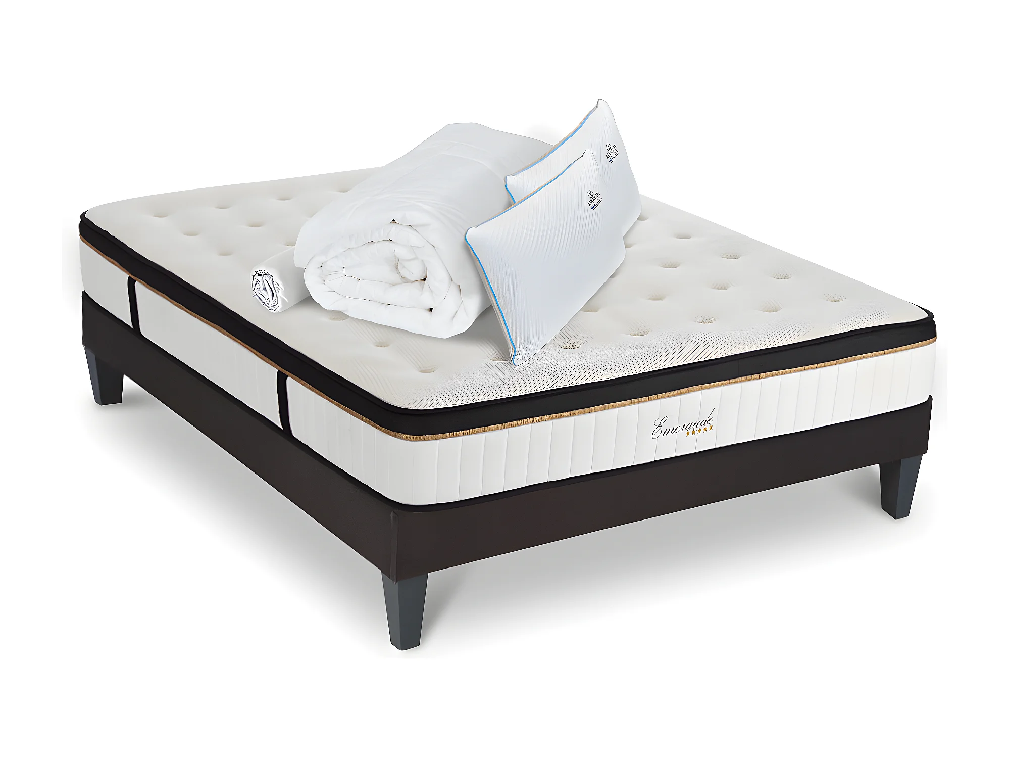 Ensemble Matelas Emeraude Mousse Accueil Mémoire de Forme+ sommier + accessoires - 140 x 190 cm
