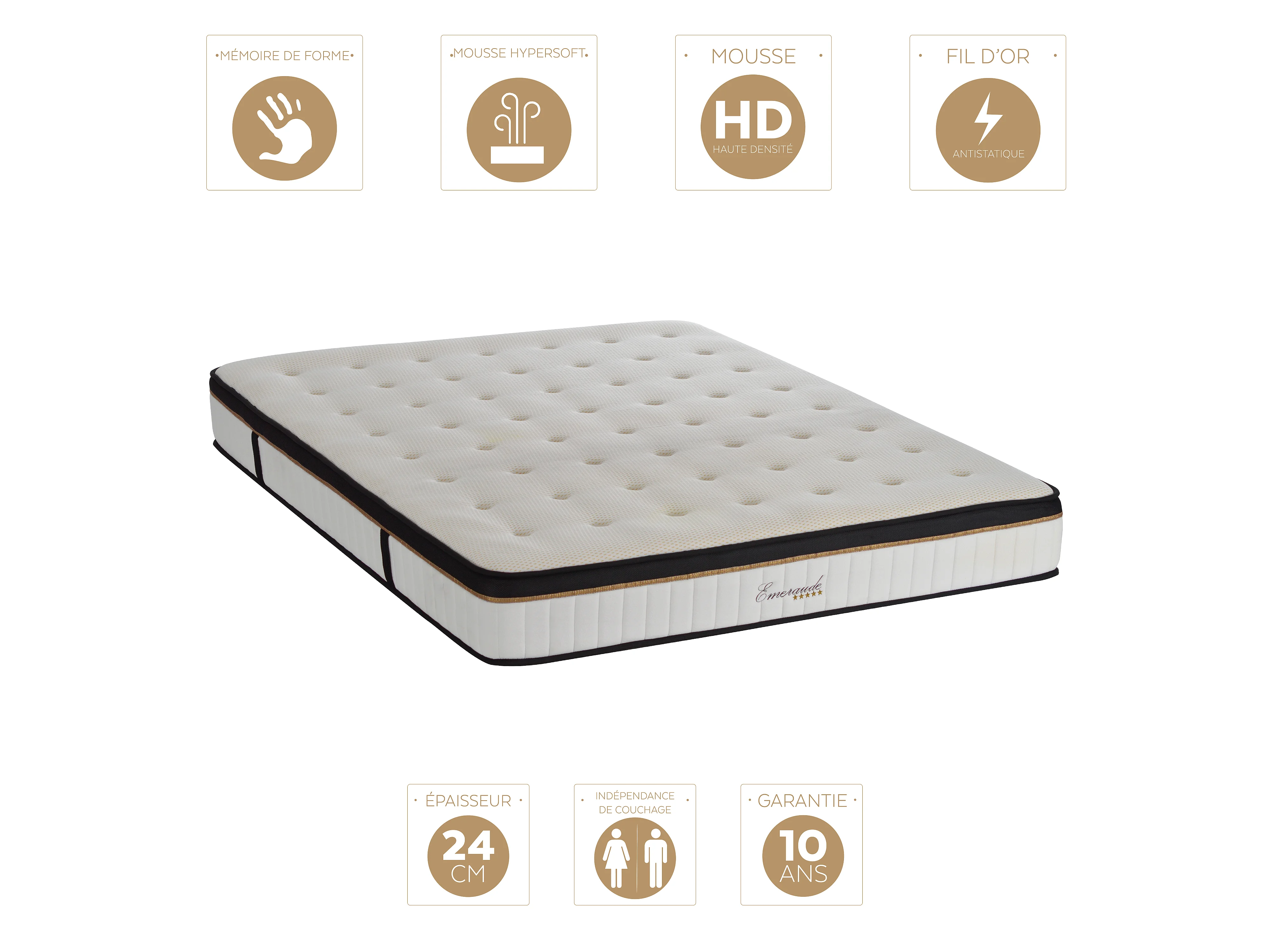 Ensemble Matelas Emeraude Mousse Accueil Mémoire de Forme+ sommier + accessoires - 90 x 190 cm