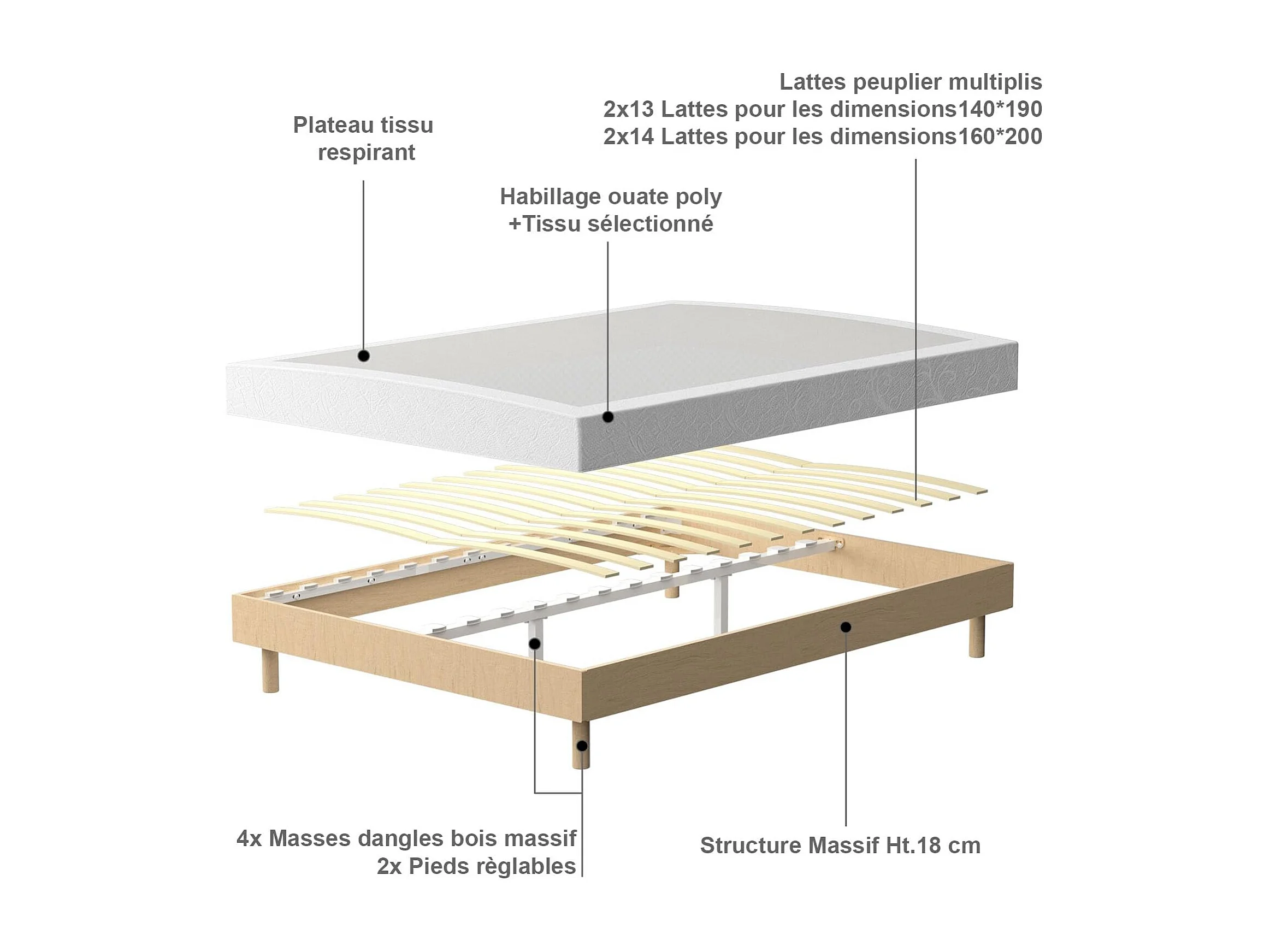 Ensemble Matelas en Mousse+ Lit Sommier Tapissier Déco 140x190cm, Epaisseur du Matelas 20cm
