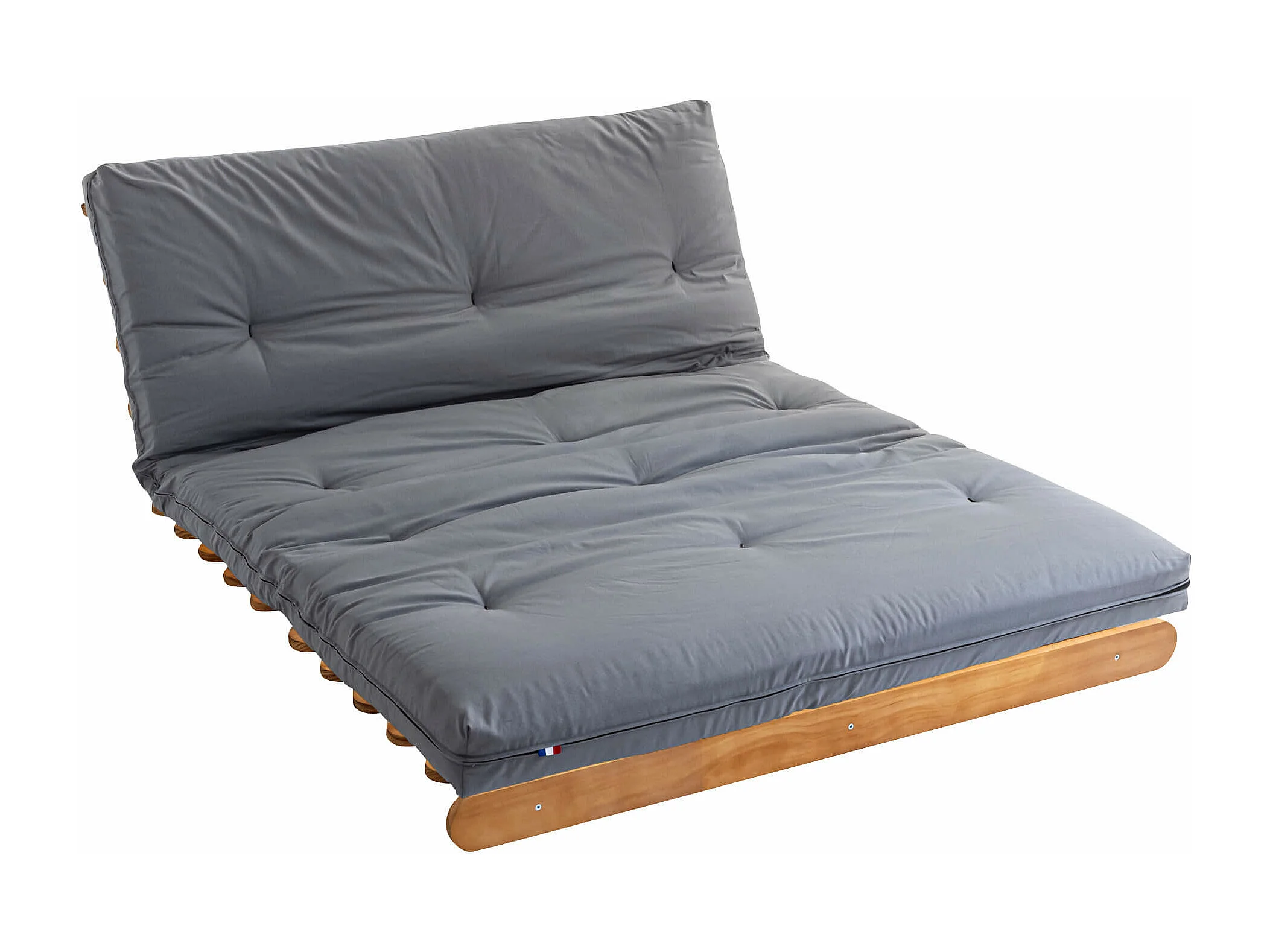Ensemble matelas futon en coton et structure en bois massif naturel 140x200 Gris