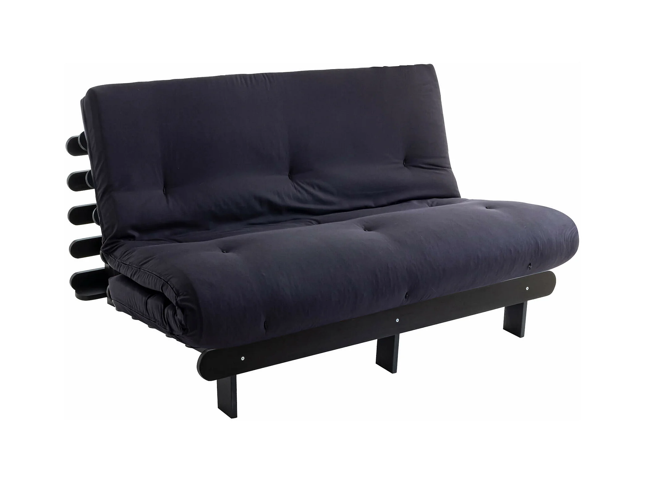Ensemble matelas futon en coton et structure en bois massif noir 160x200 Anthracite