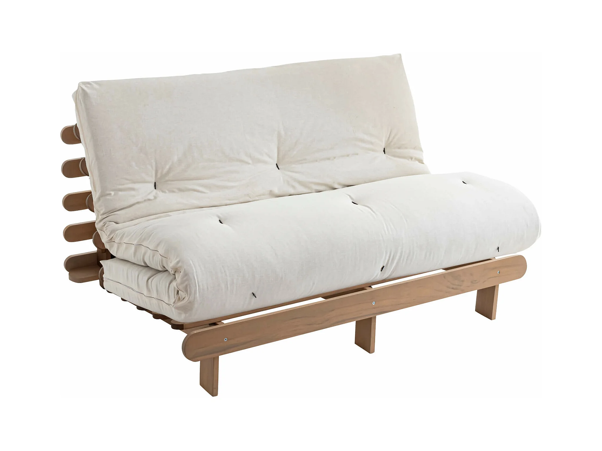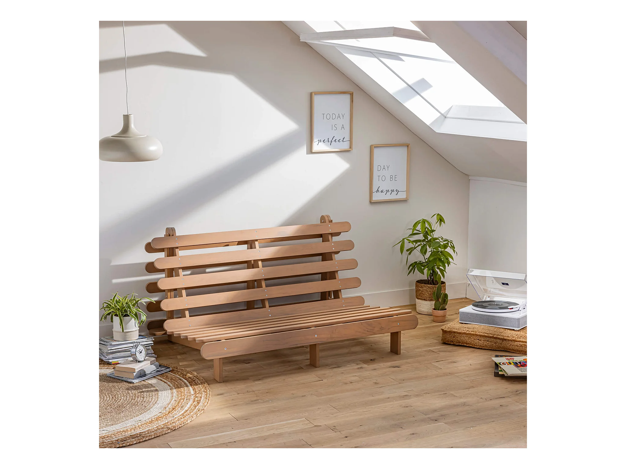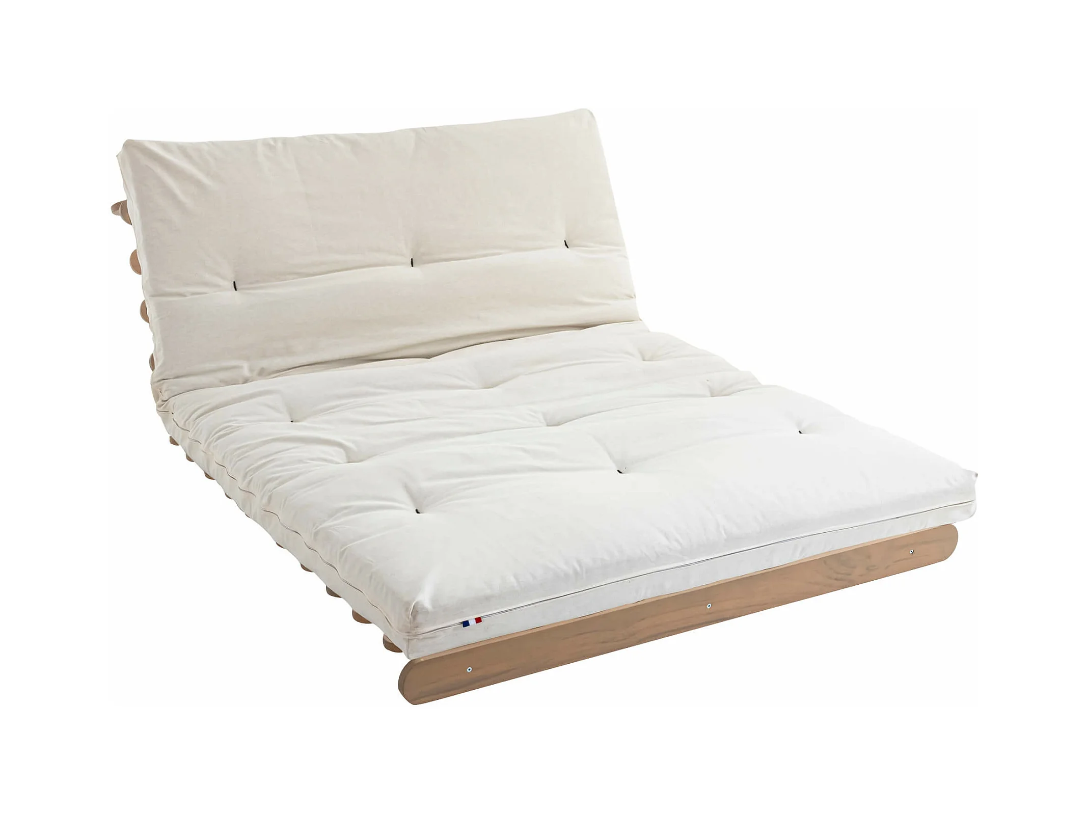 Ensemble matelas futon en coton et structure en bois massif taupe 140x200 Ecru