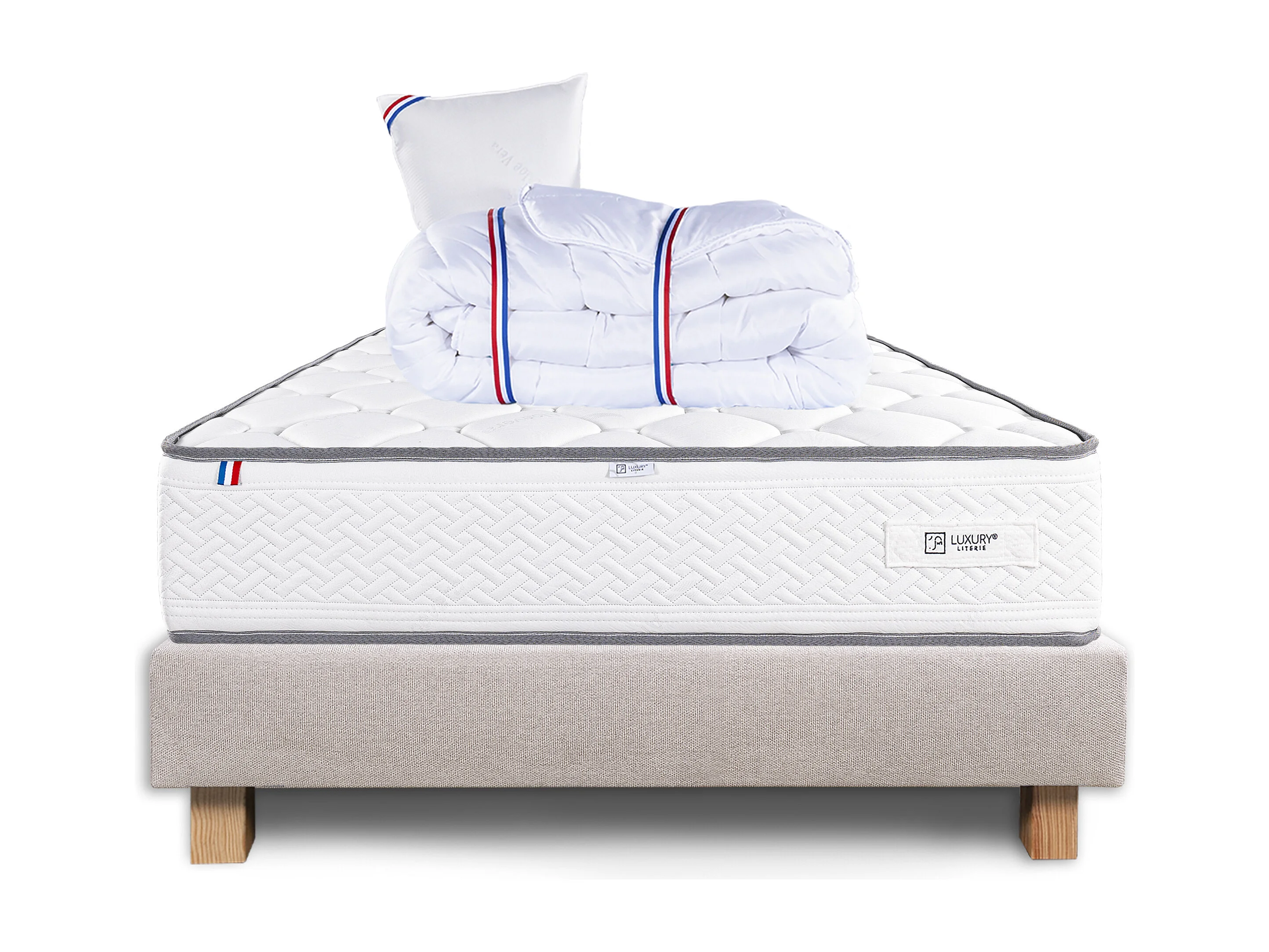 Ensemble Matelas 90x190 cm, Iris, 20 cm + sommier beige + oreiller + couette