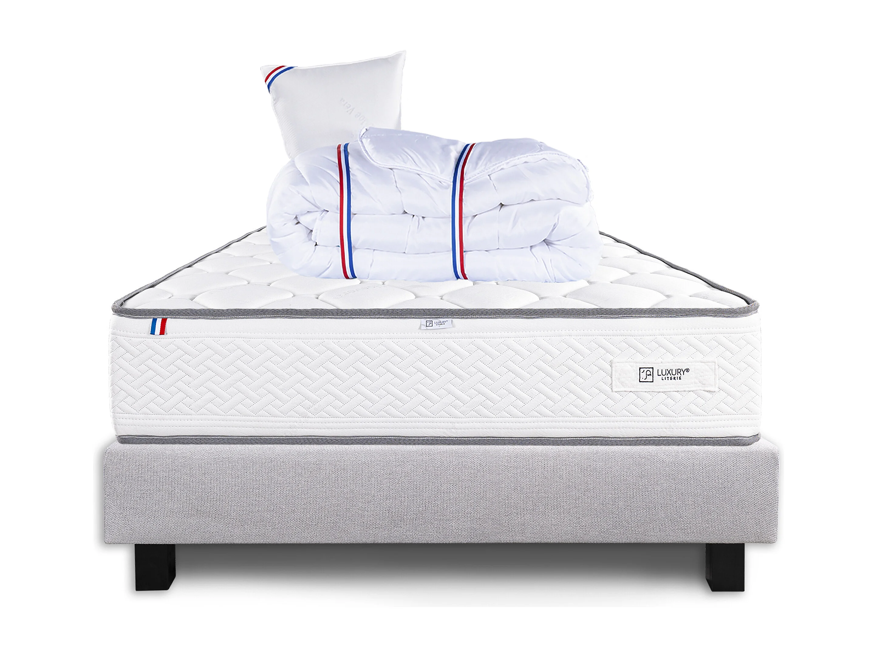 Ensemble Matelas 90x190 cm, Iris, 20 cm + sommier gris + oreiller + couette