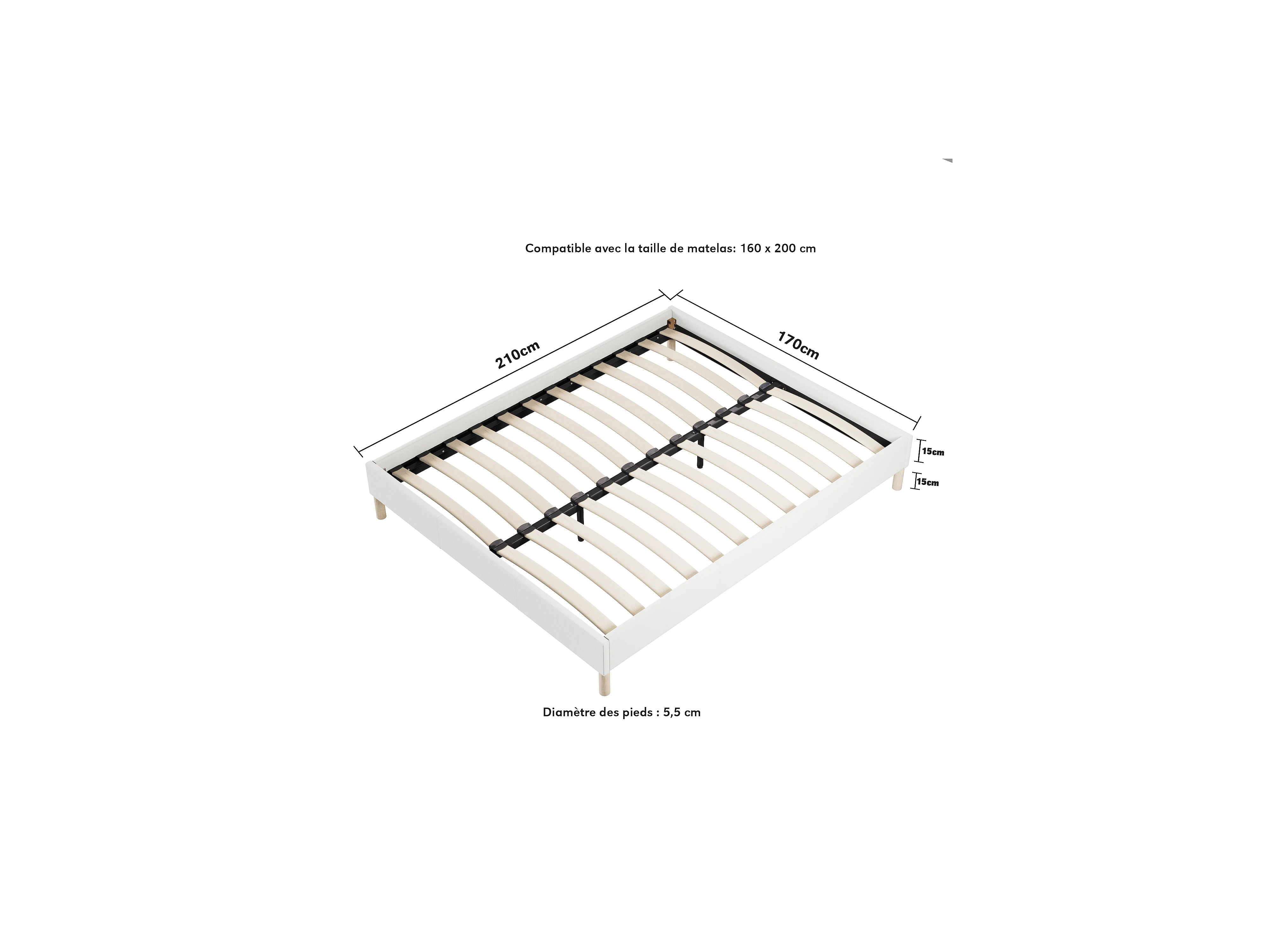 Ensemble matelas + lit 160x200 cm, matelas 16cm mousse, accueil latex, lit à lattes en bois, tissu blanc