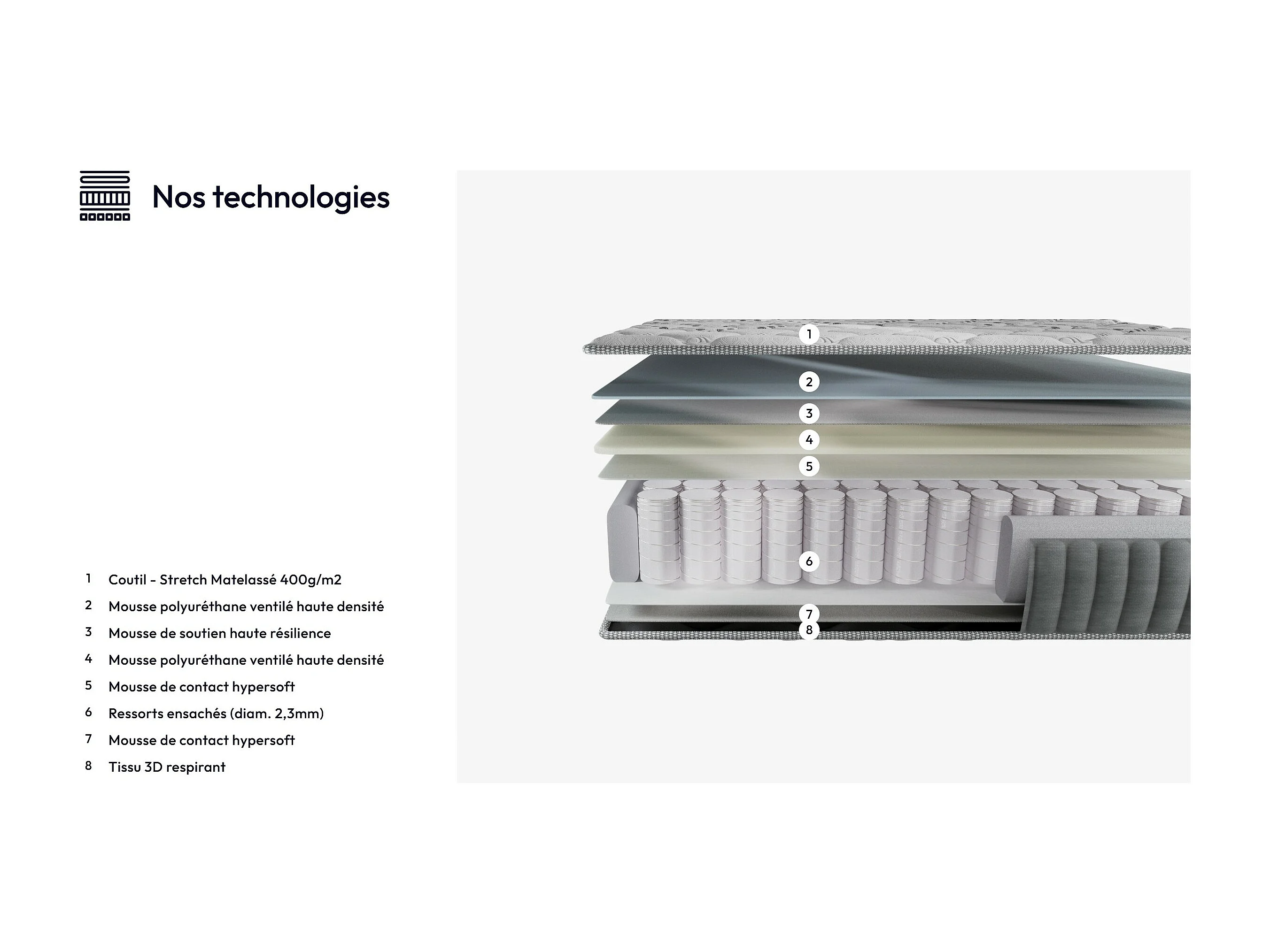 Ensemble 120x190 cm, lit avec tête de lit + matelas ressorts ensachés, ép.20cm accueil mousse HR
