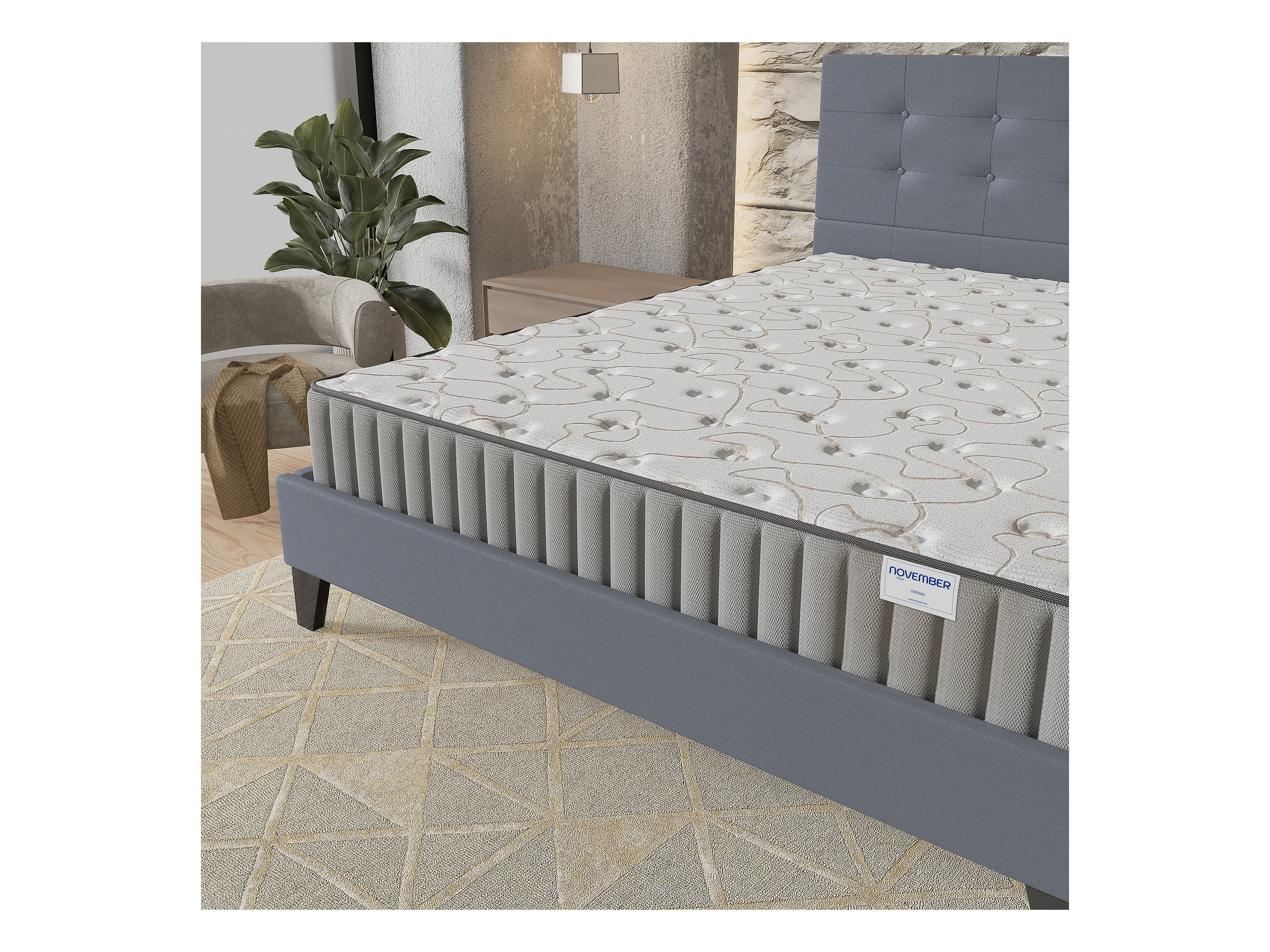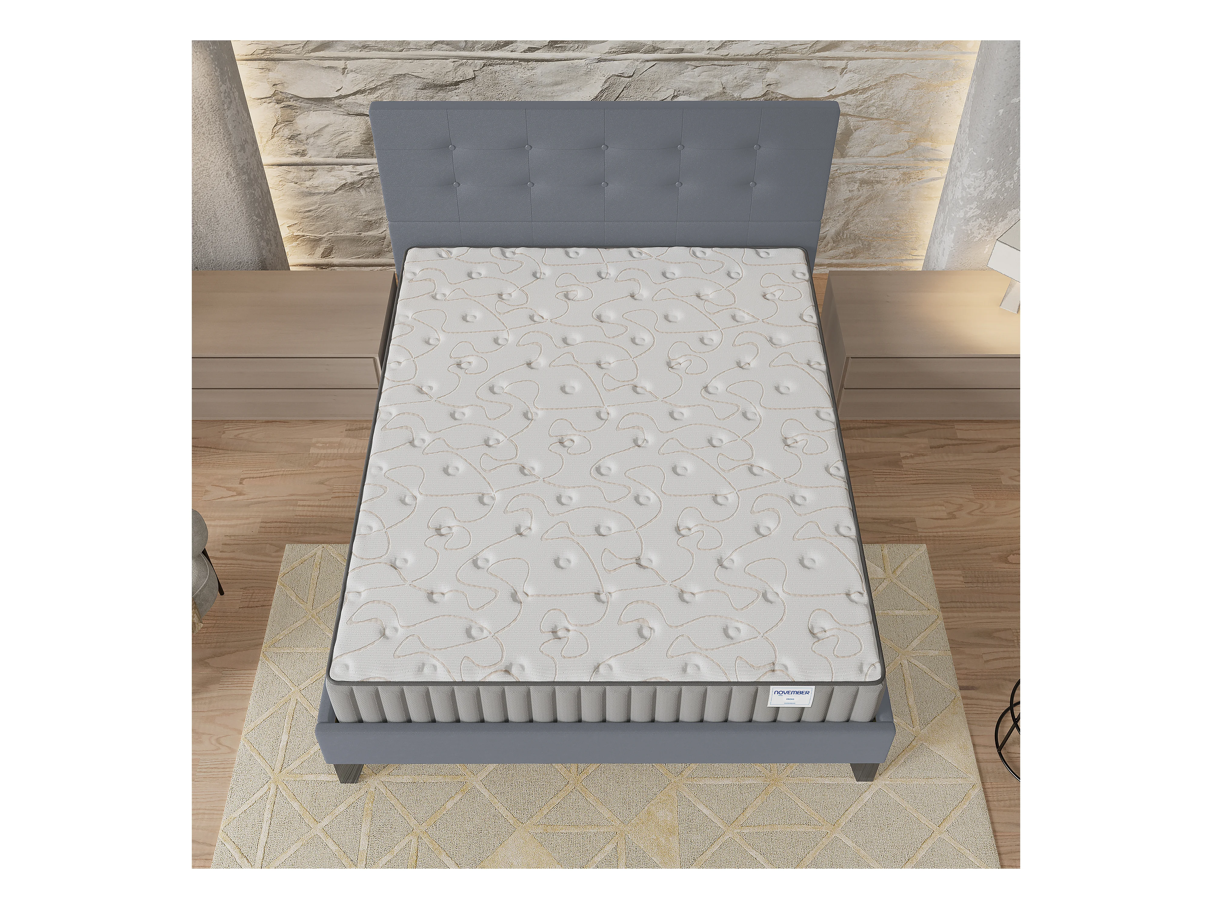 Ensemble Matelas + lit 120x190 cm, Matelas 16cm mousse + mémoire de forme, lit à tête de lit capitonnée similicuir gris