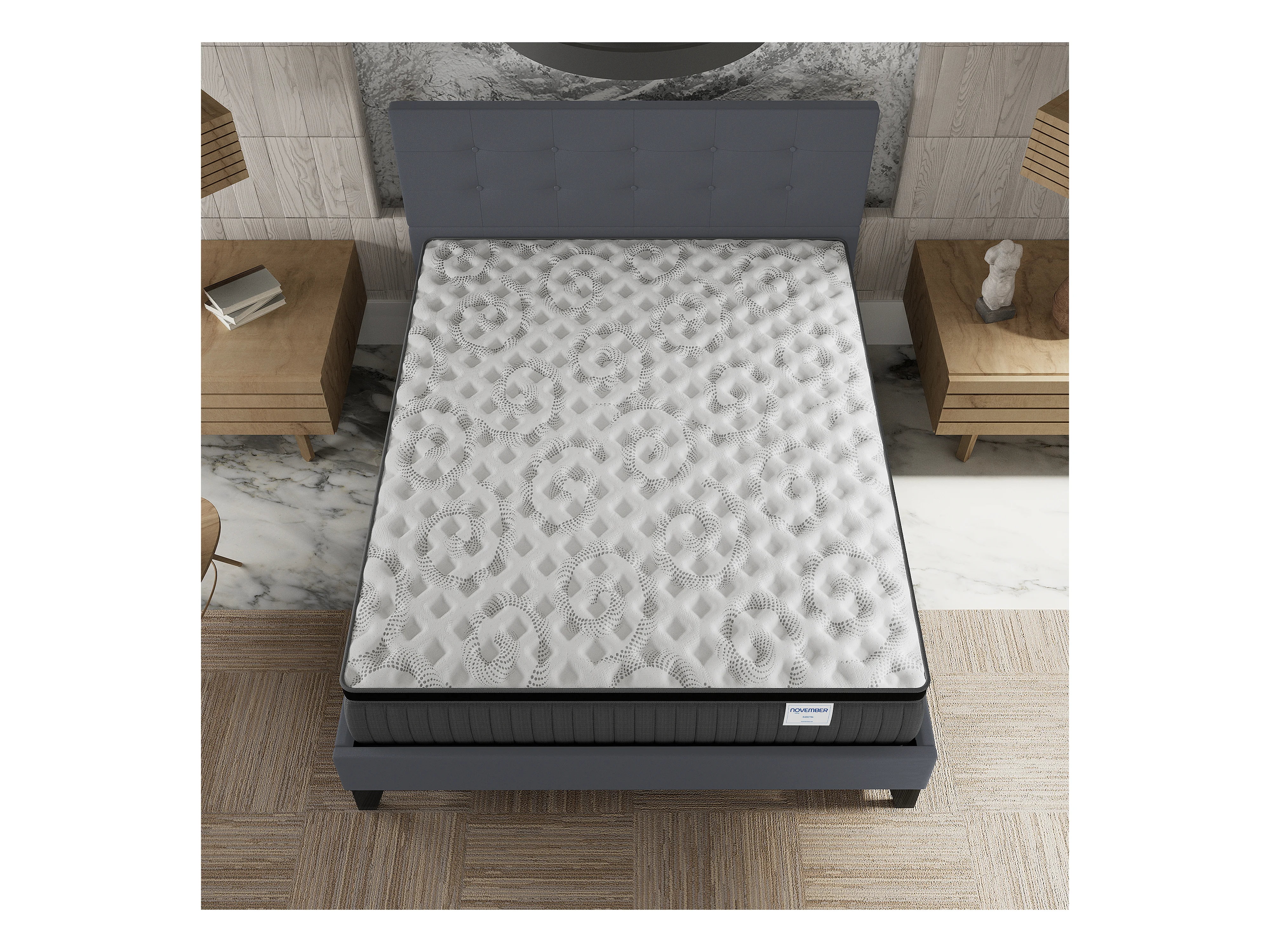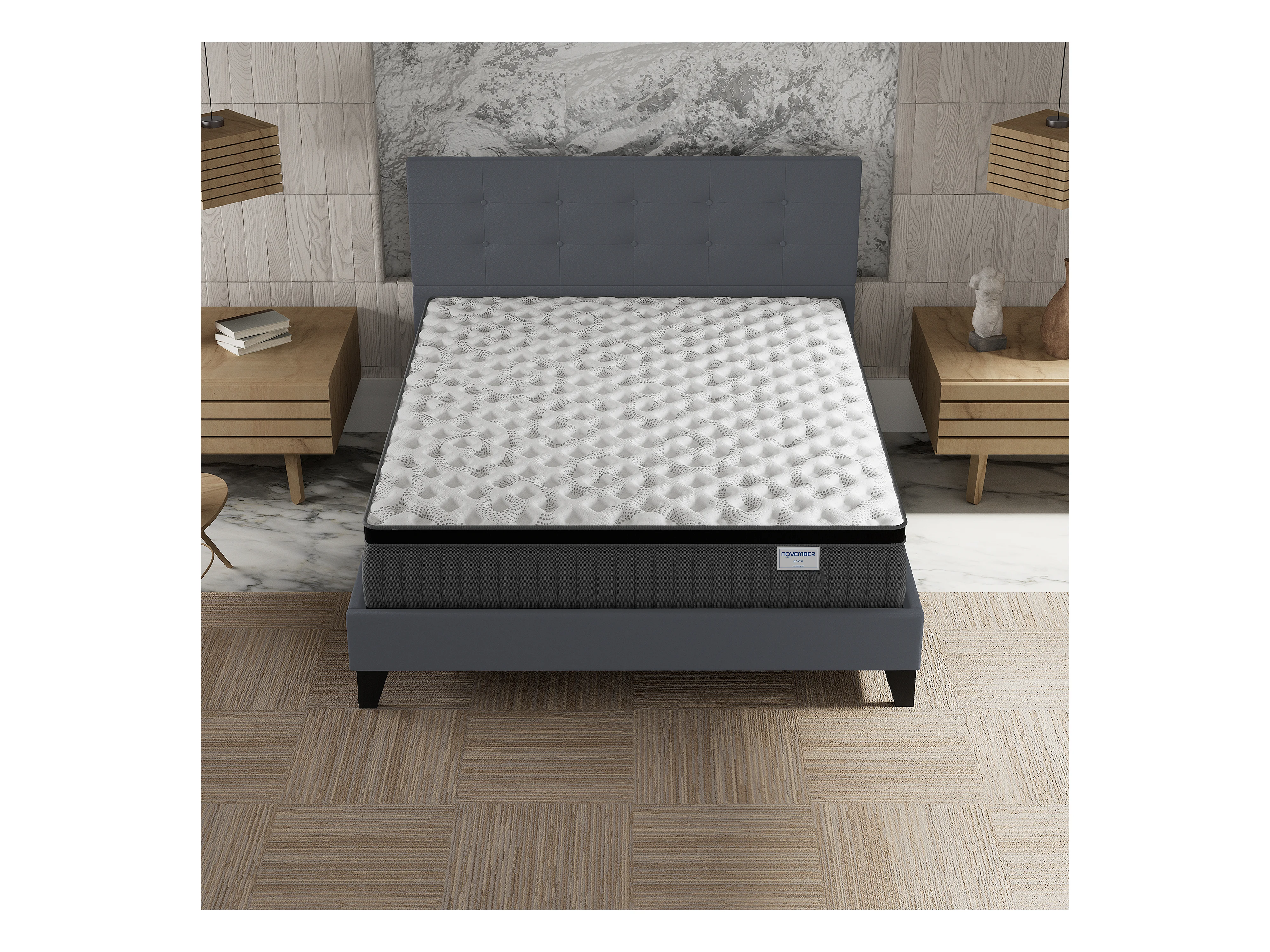 Ensemble matelas + lit 140x190 cm, matelas 30cm ressorts ensachés + mémoire de forme, lit à tête de lit capitonnée similicuir gris