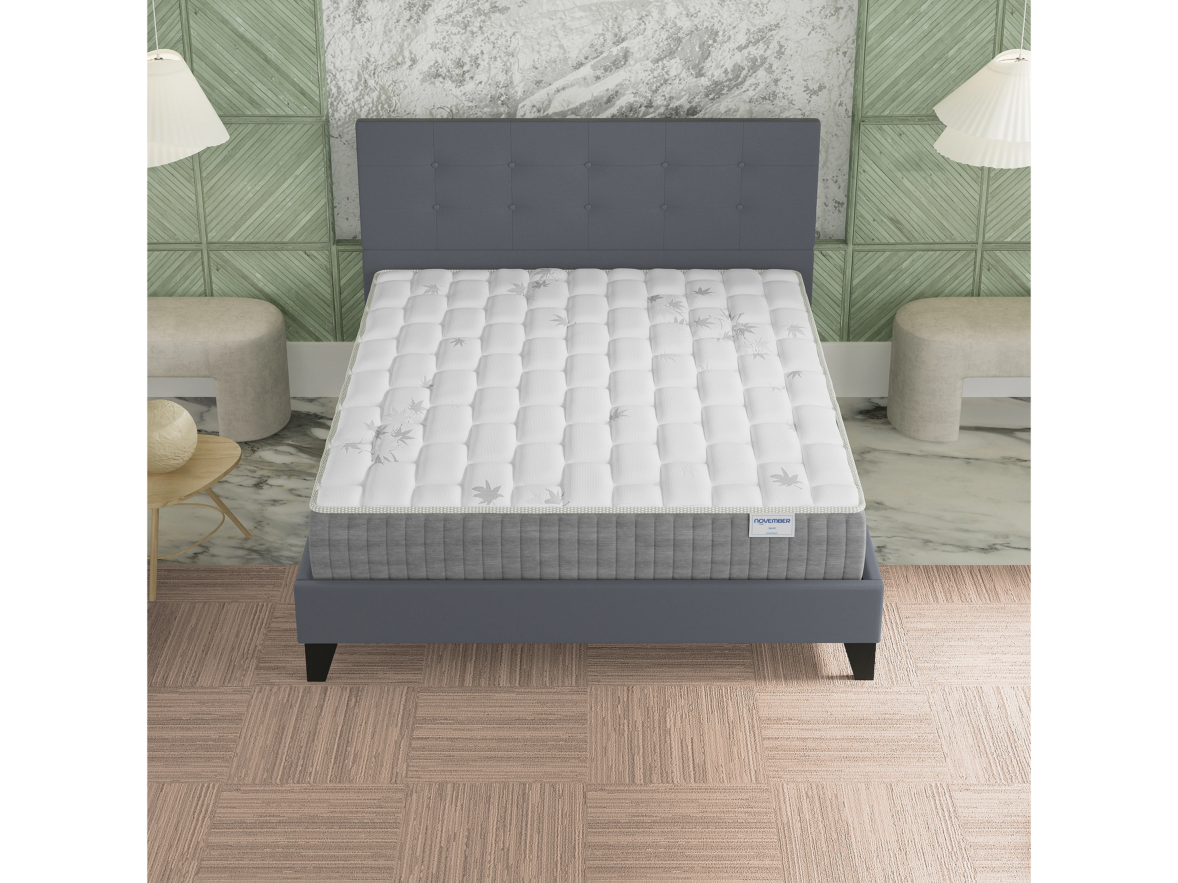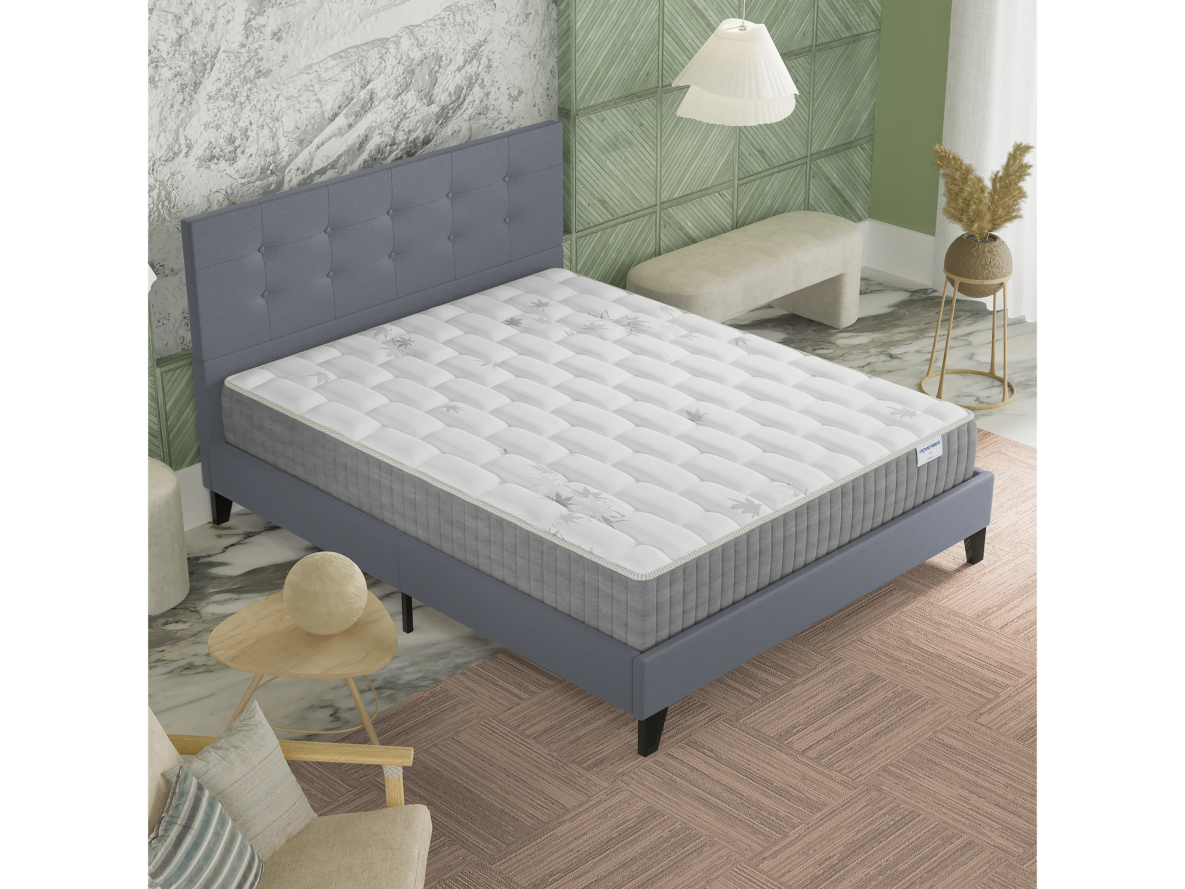 Ensemble 140x190 cm, lit avec tête de lit + matelas ressorts ensachés, ép. 25cm à mémoire de forme
