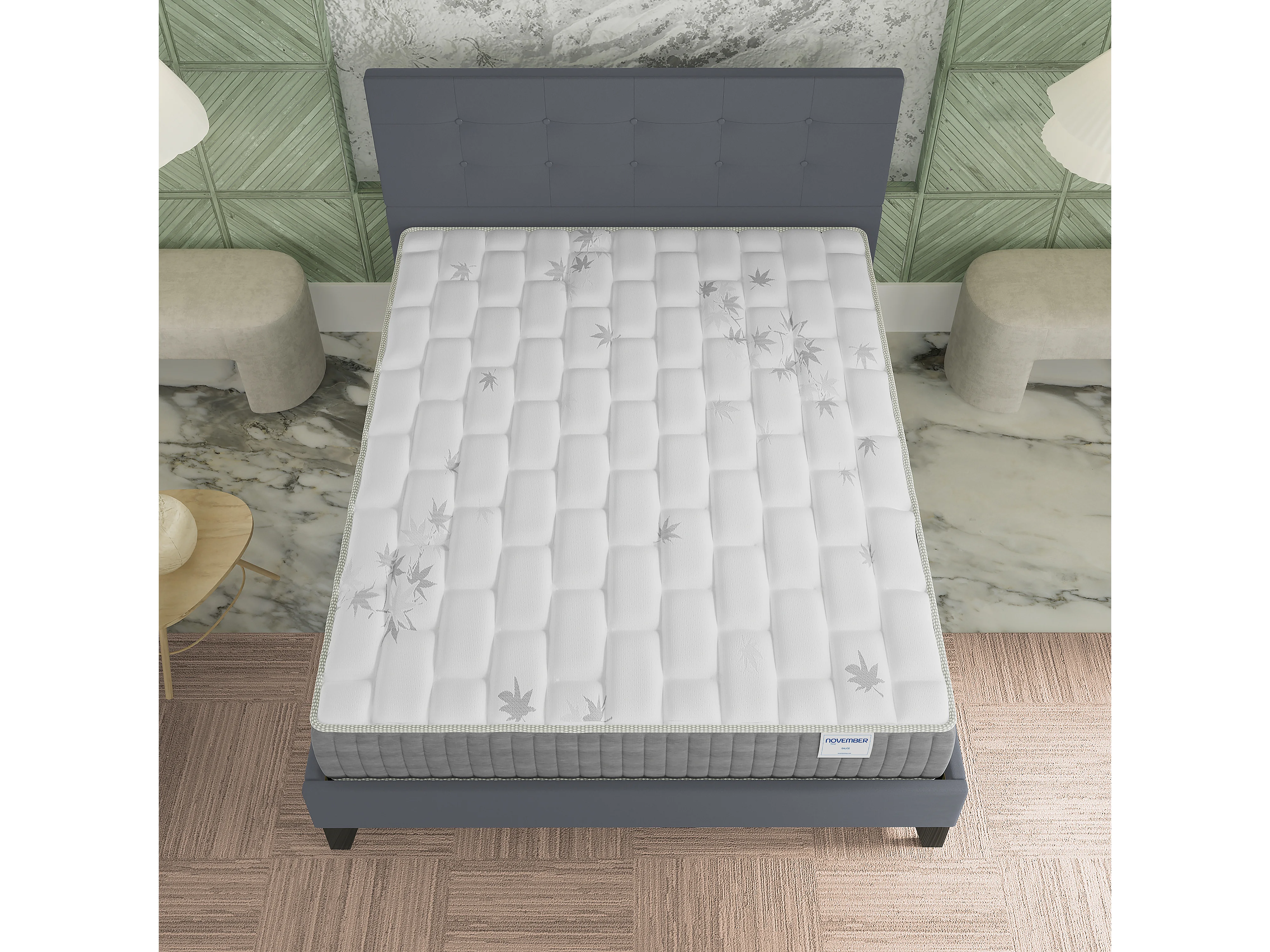 Ensemble 140x200 cm, lit avec tête de lit + matelas ressorts ensachés, ép. 25cm à mémoire de forme