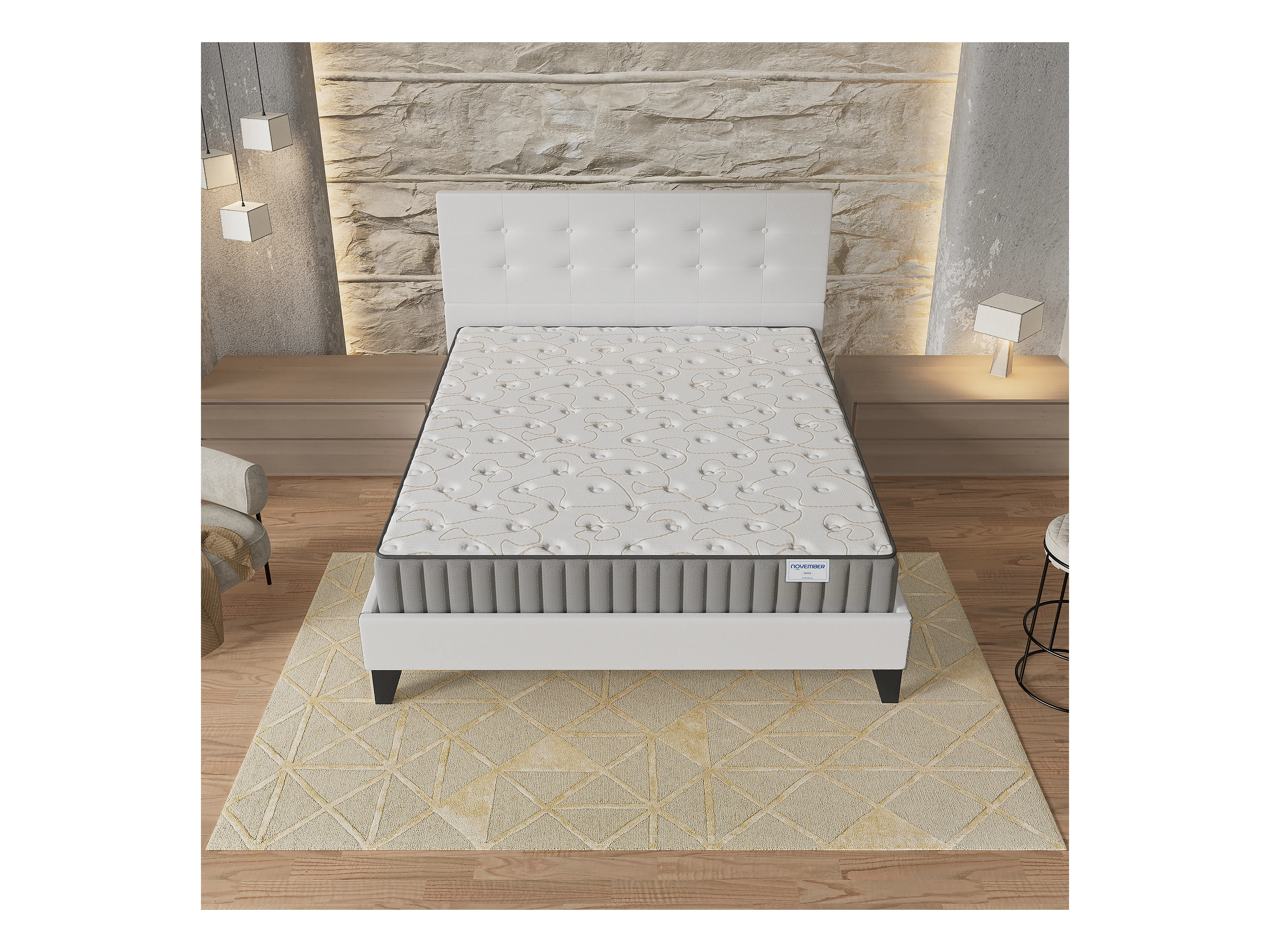 Ensemble matelas + lit 140x200 cm, matelas 16cm mousse + mémoire de forme, lit à tête de lit capitonnée similicuir blanc