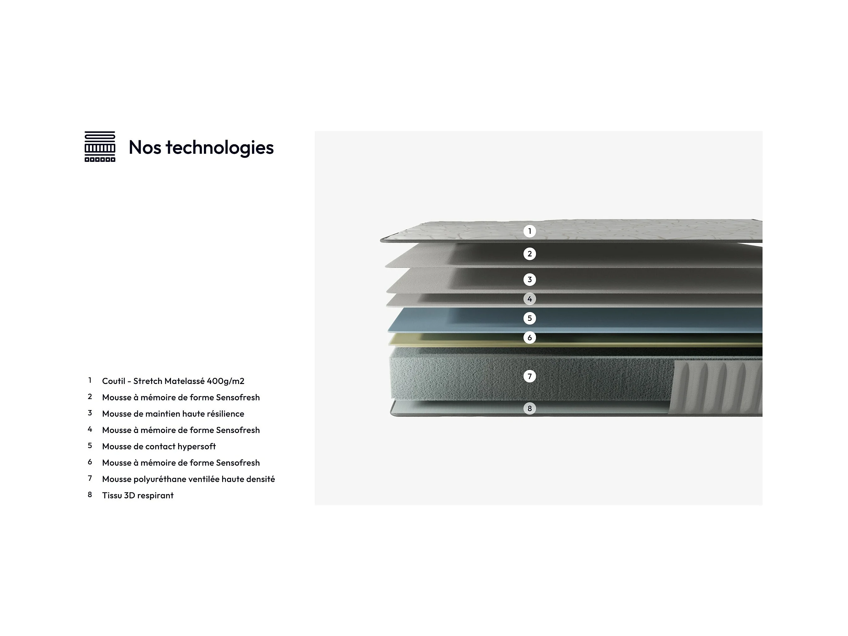 Ensemble Matelas + lit 140x200 cm, Matelas 22cm mousse + mémoire de forme, lit à tête de lit capitonnée similicuir noir