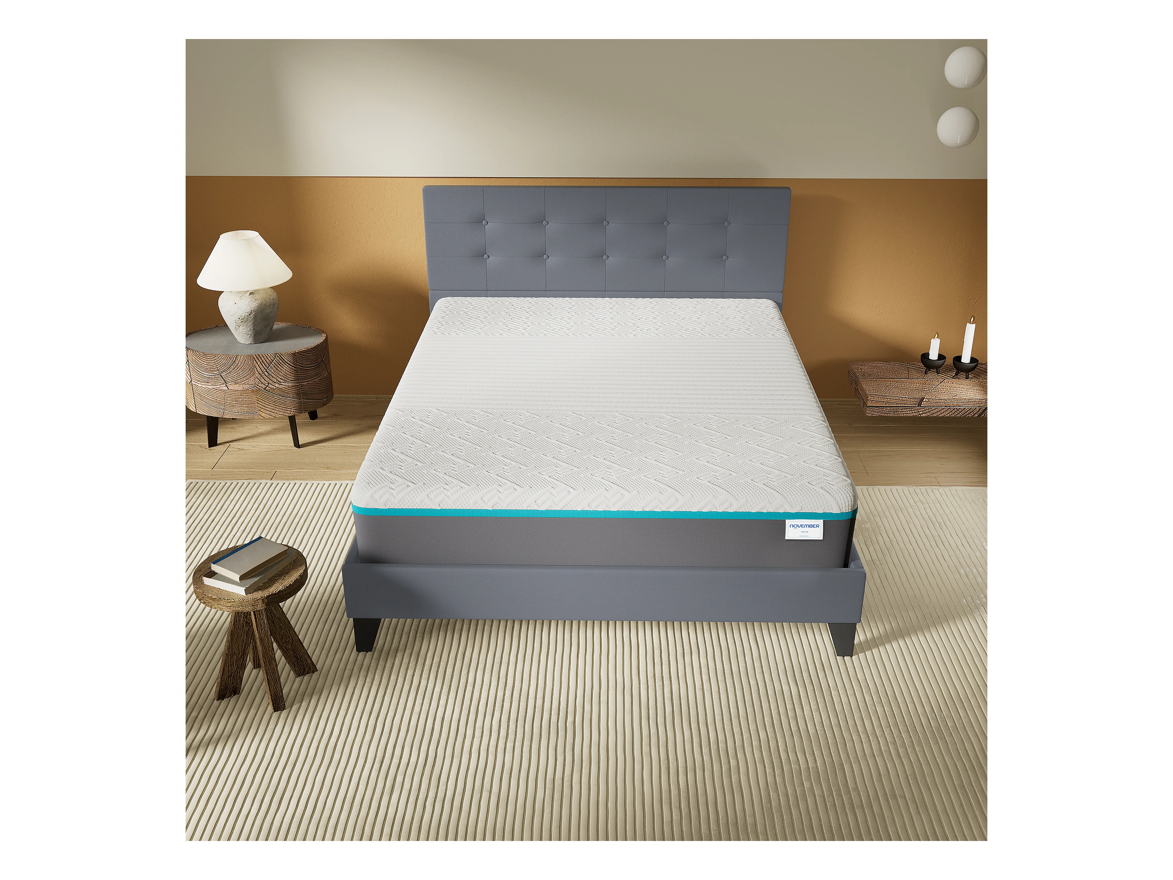 Ensemble 140x200 cm, lit avec tête de lit + Matelas mousse latex ép.28cm accueil à mémoire de forme