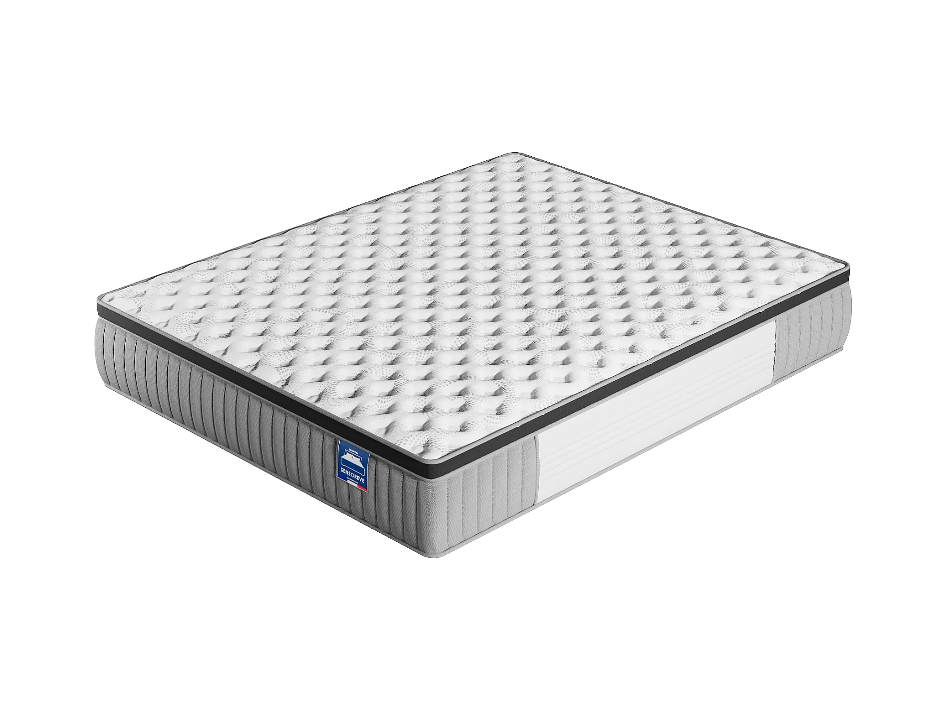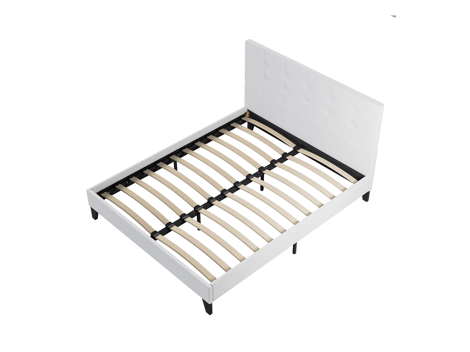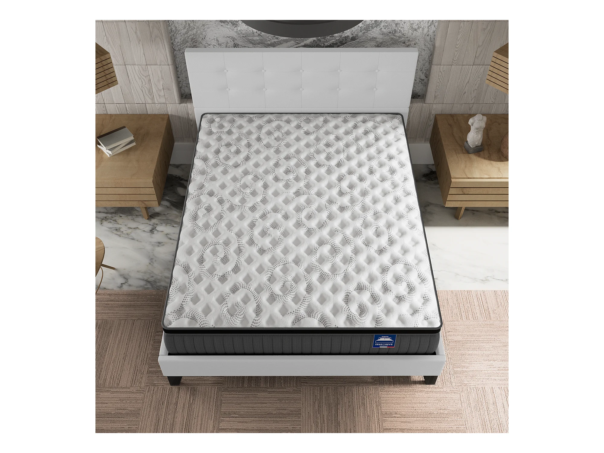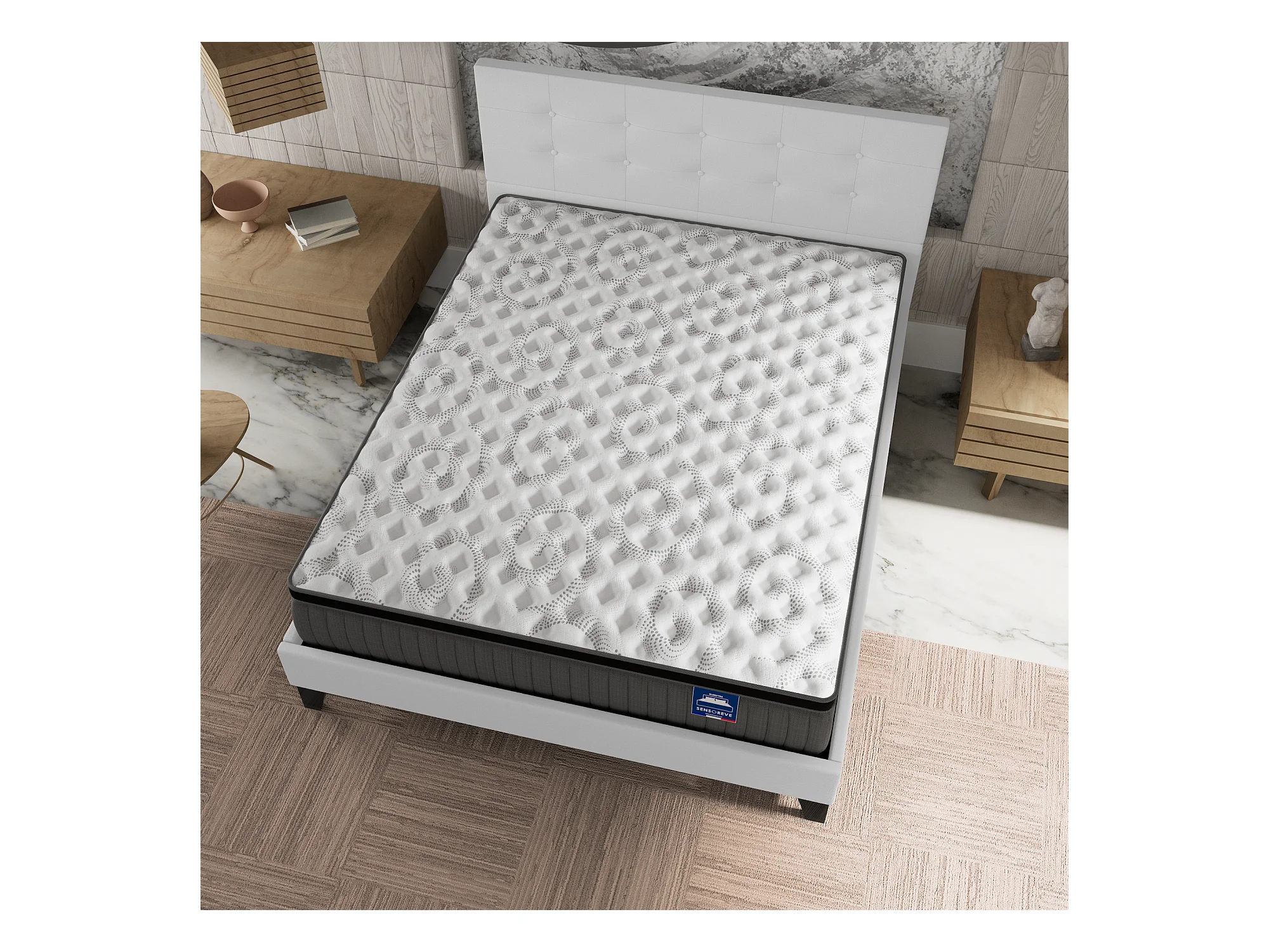 Ensemble matelas + lit 160x200 cm, matelas 30cm ressorts ensachés + mémoire de forme, lit à tête de lit capitonnée similicuir blanc