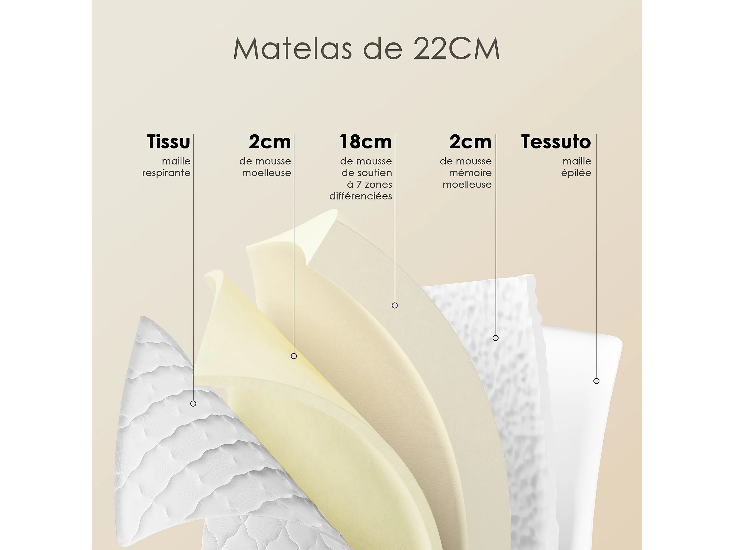 Ensemble Matelas Mousse 90x190 cm Epaisseur 30cm + Sommier Déco