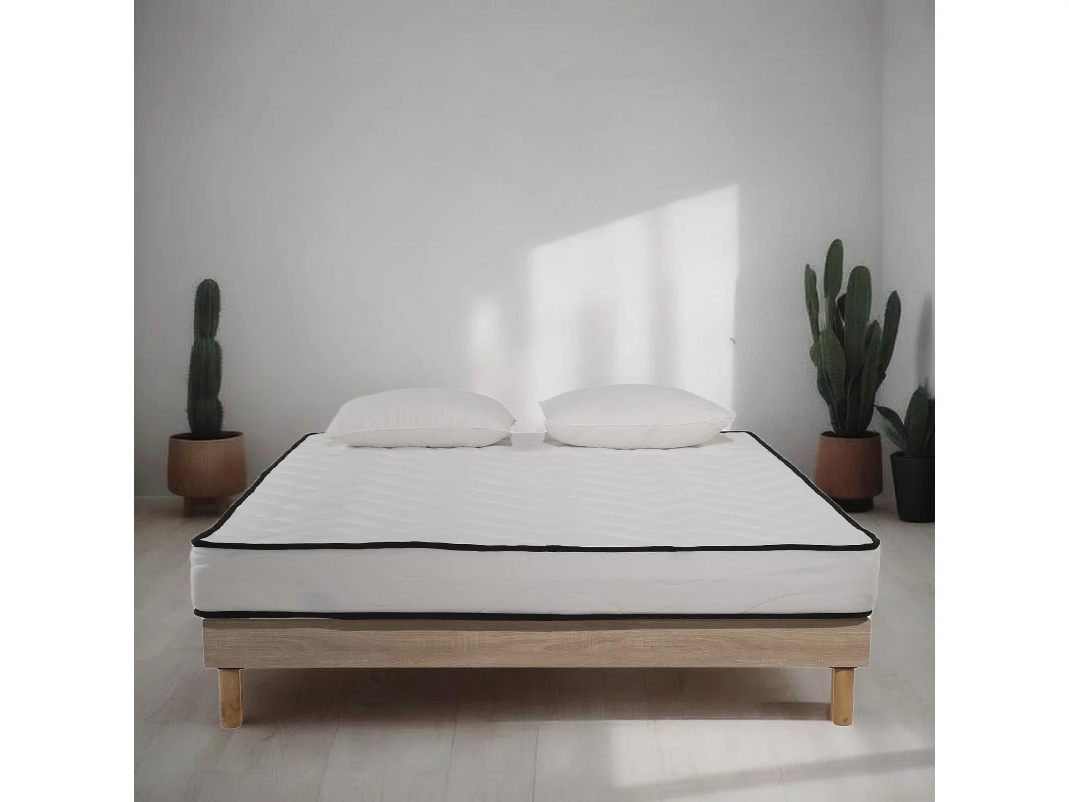 Ensemble Matelas mousse Confort 140x190cm - mousse - 2 Oreillers 50x70 et Sommier kit couleur chêne
