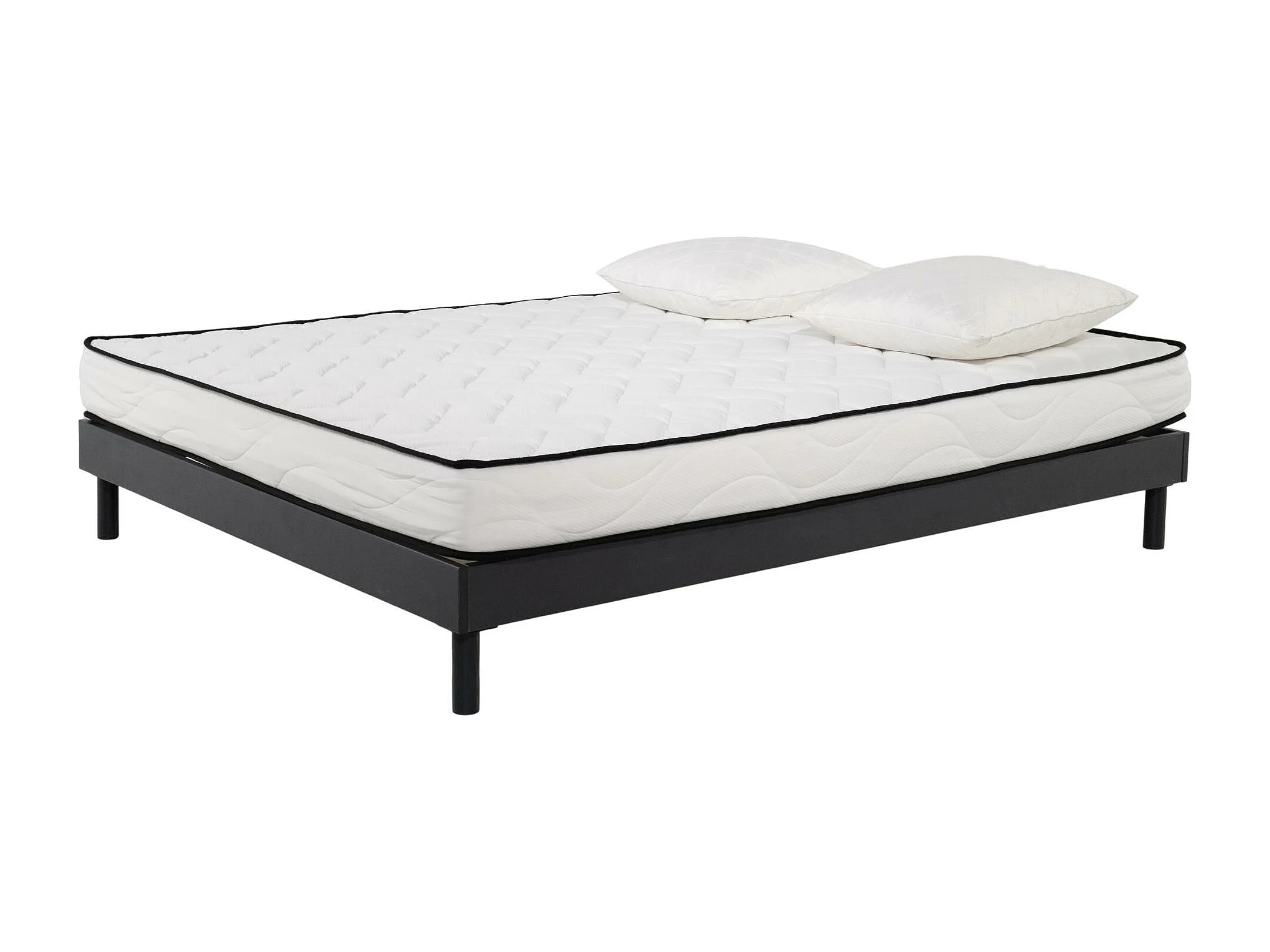 Ensemble Matelas mousse Confort 140x200 - 2 Oreillers mémoire 60x60 - Sommier kit Gris