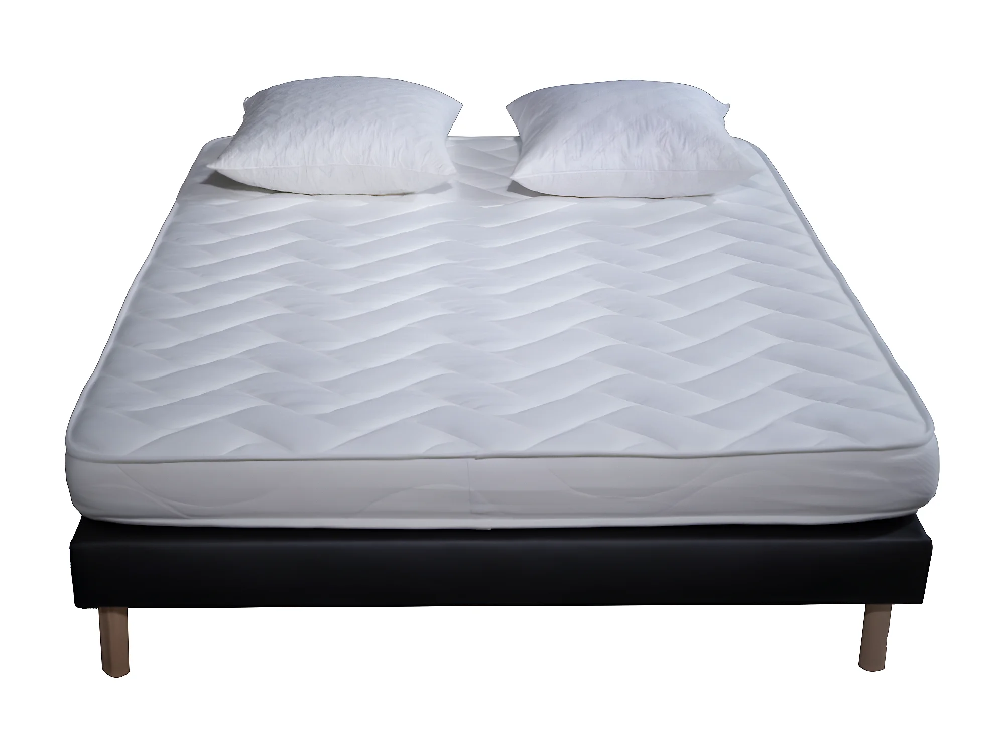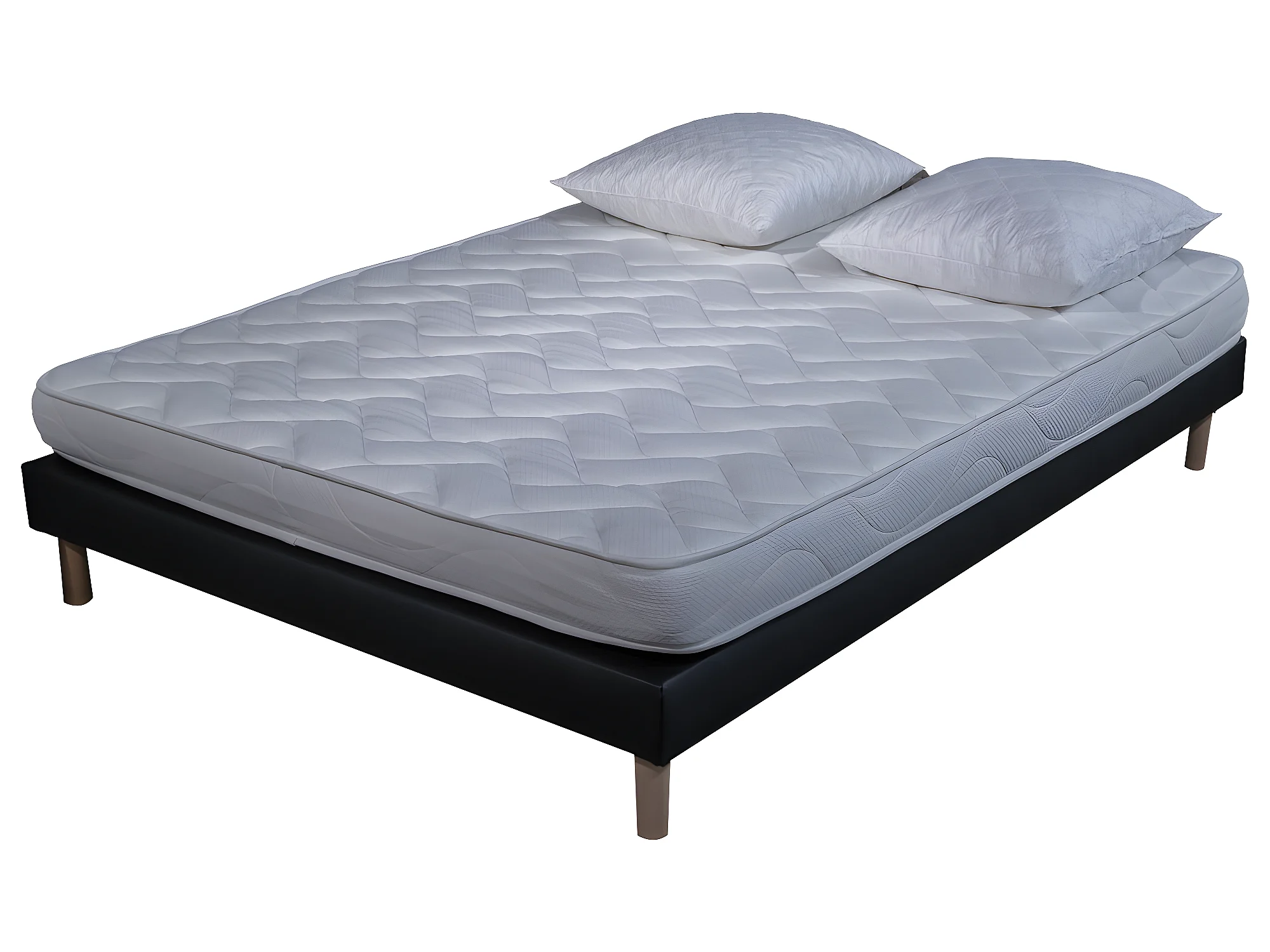 Ensemble Matelas mousse ECO - 160x200 - 2 Oreillers mémoire 60x60 - Sommier tapissier noir