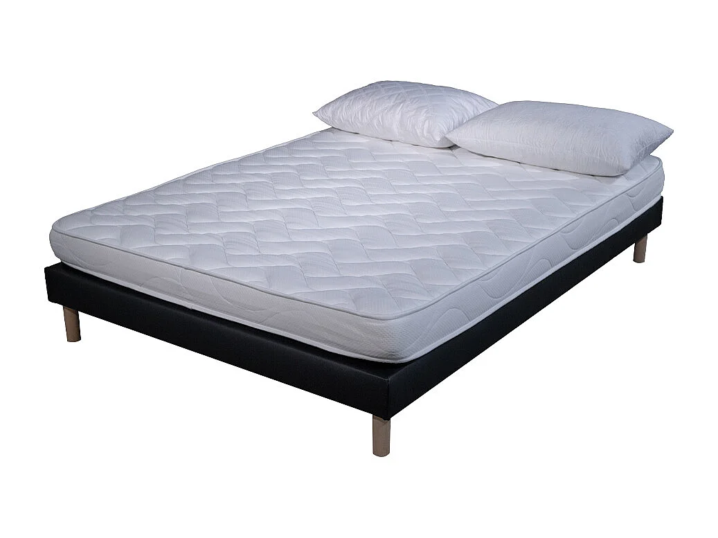 Ensemble Matelas mousse ECO - 160x200 et 2 Oreillers 50x70 - mousse et Sommier noir