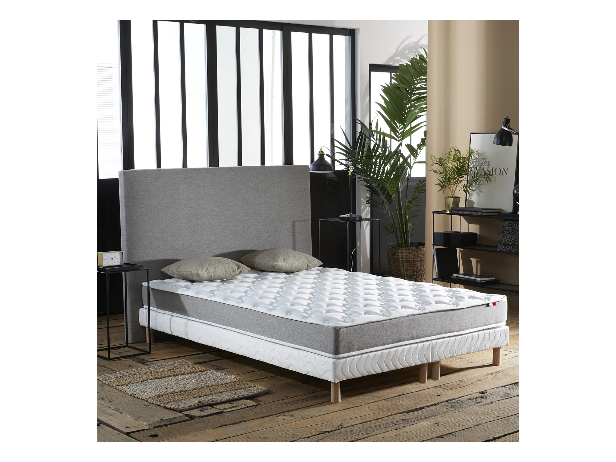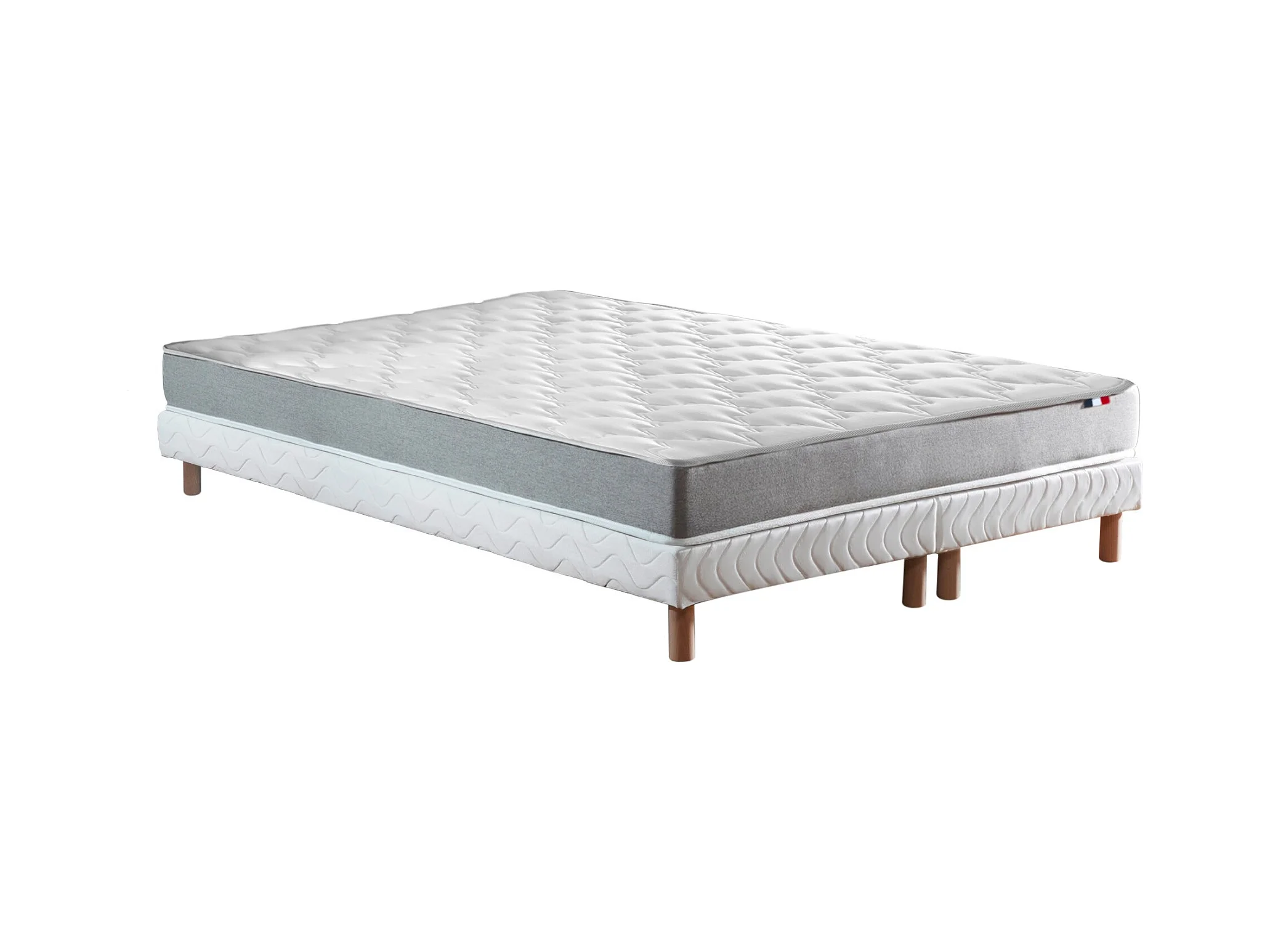 Ensemble matelas mousse ferme réversible ALTO et sommier - confort français Dimensions - 2x80 x 200 cm, Sommier - Blanc