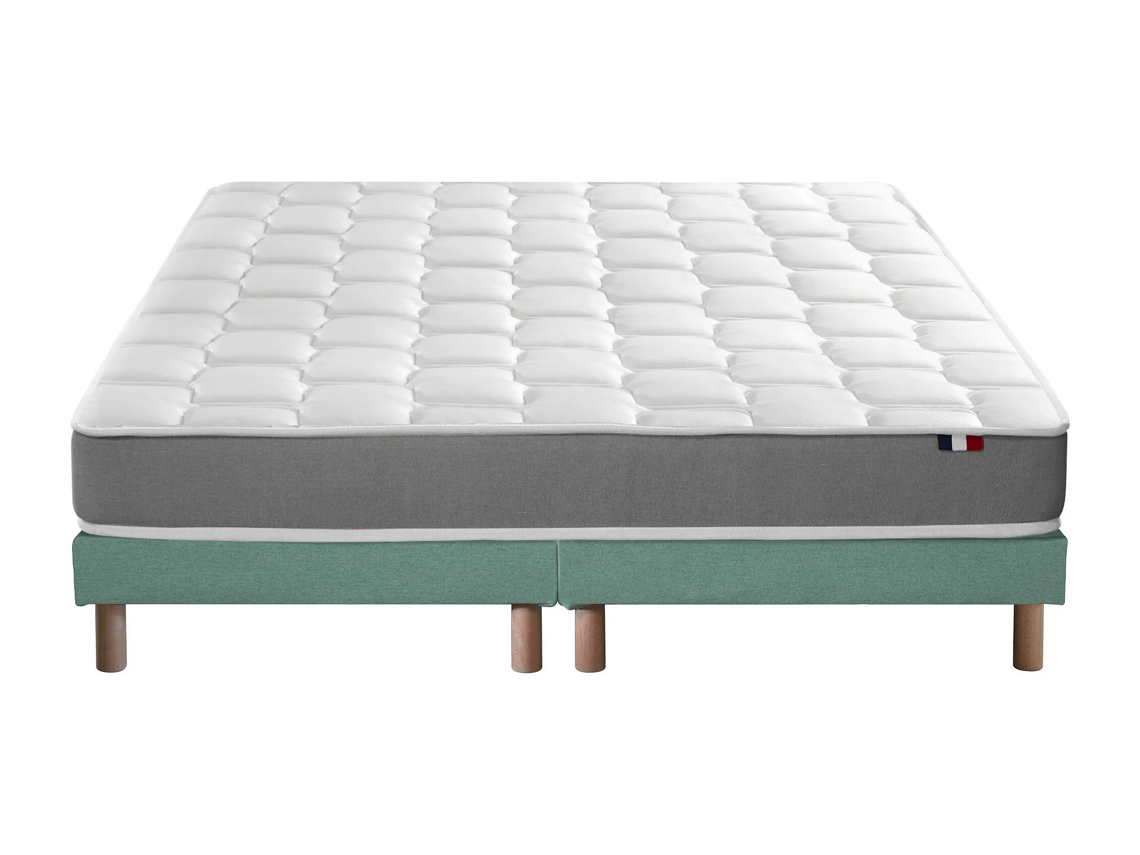 Ensemble matelas mousse haute résilience CIRRUS avec sommier - confort français Dimensions - 2x80 x 200 cm, Sommier - Vert celadon