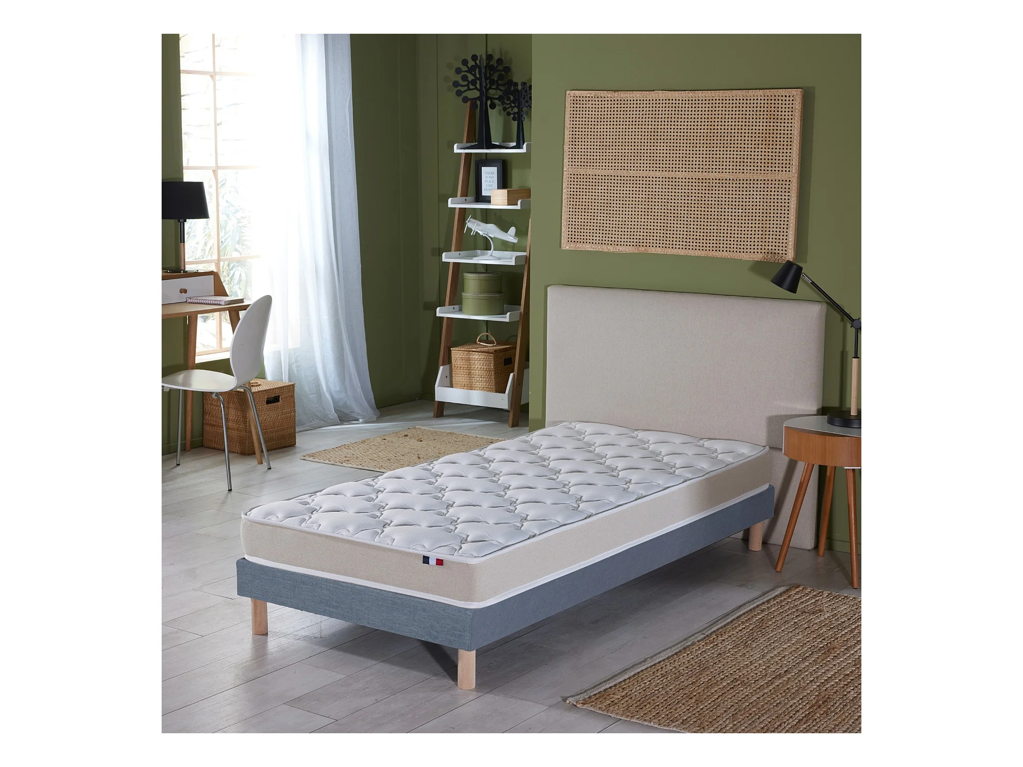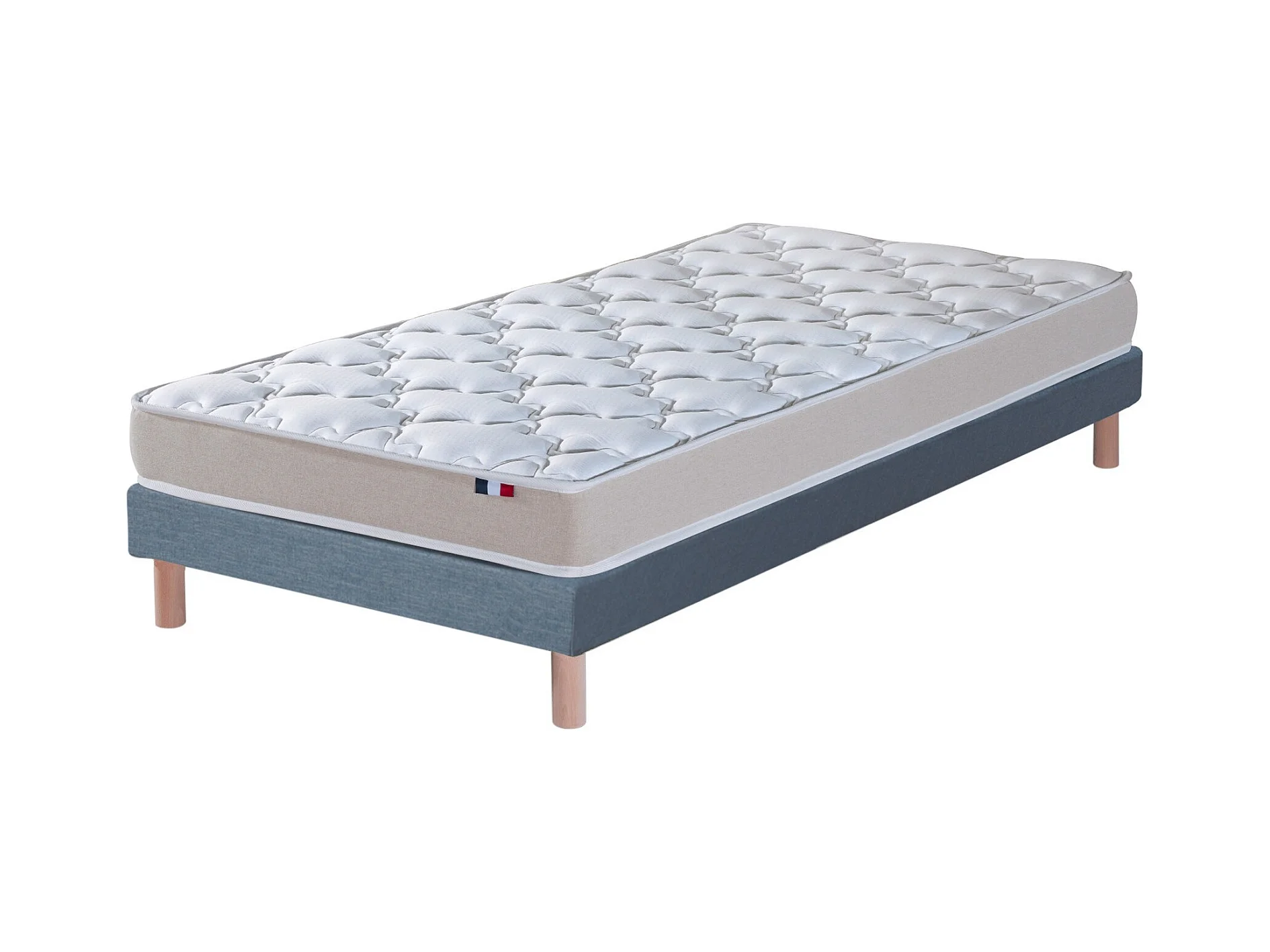 Ensemble Matelas Mousse Haute Résilience ESSENCE + Latex 3 zones +Sommier - Made in France Dimensions - 90 x 190 cm, Sommier - Bleu denim