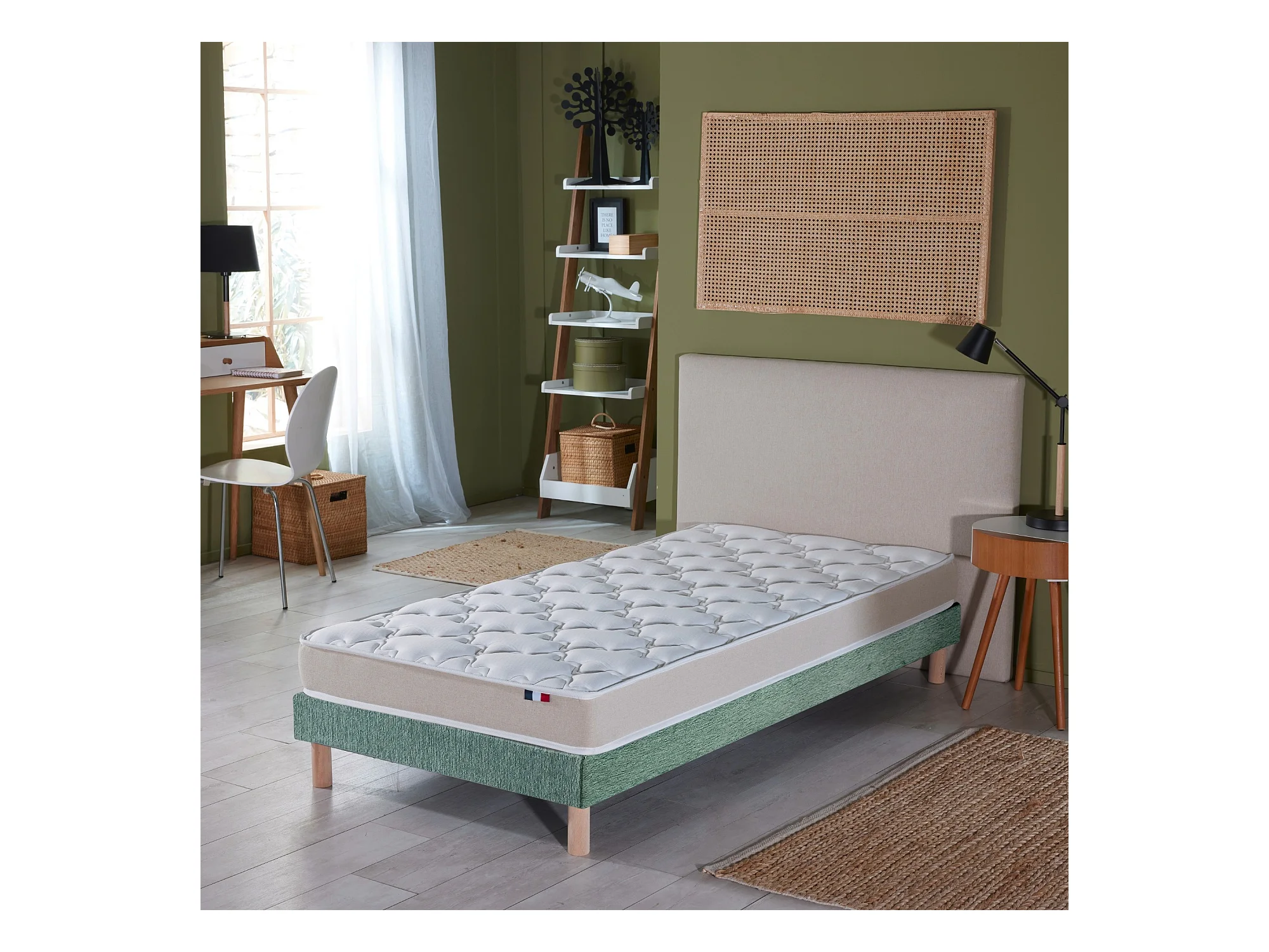 Ensemble Matelas Mousse Haute Résilience ESSENCE + Latex 3 zones +Sommier - Made in France Dimensions - 90 x 190 cm, Sommier - Vert celadon