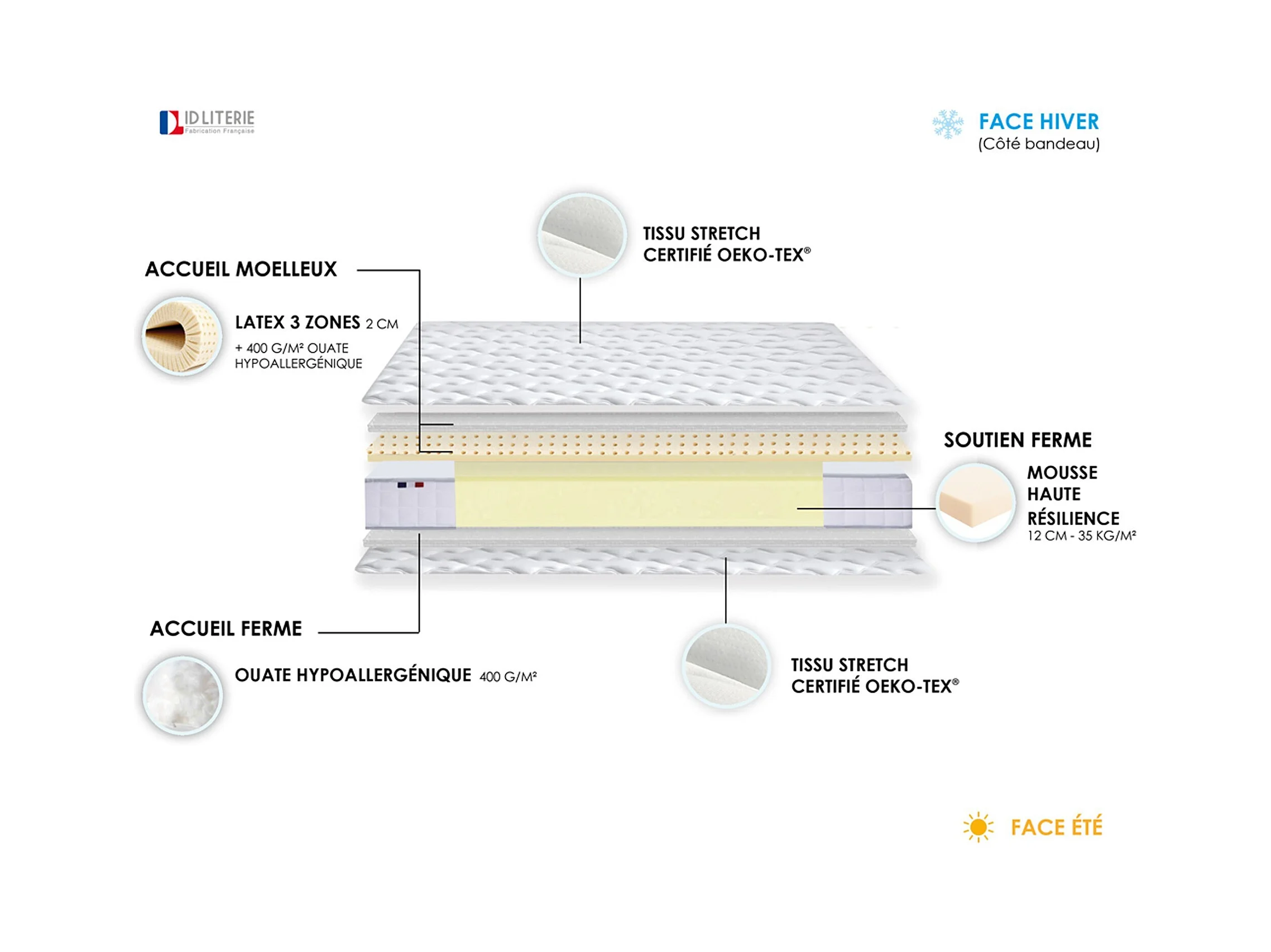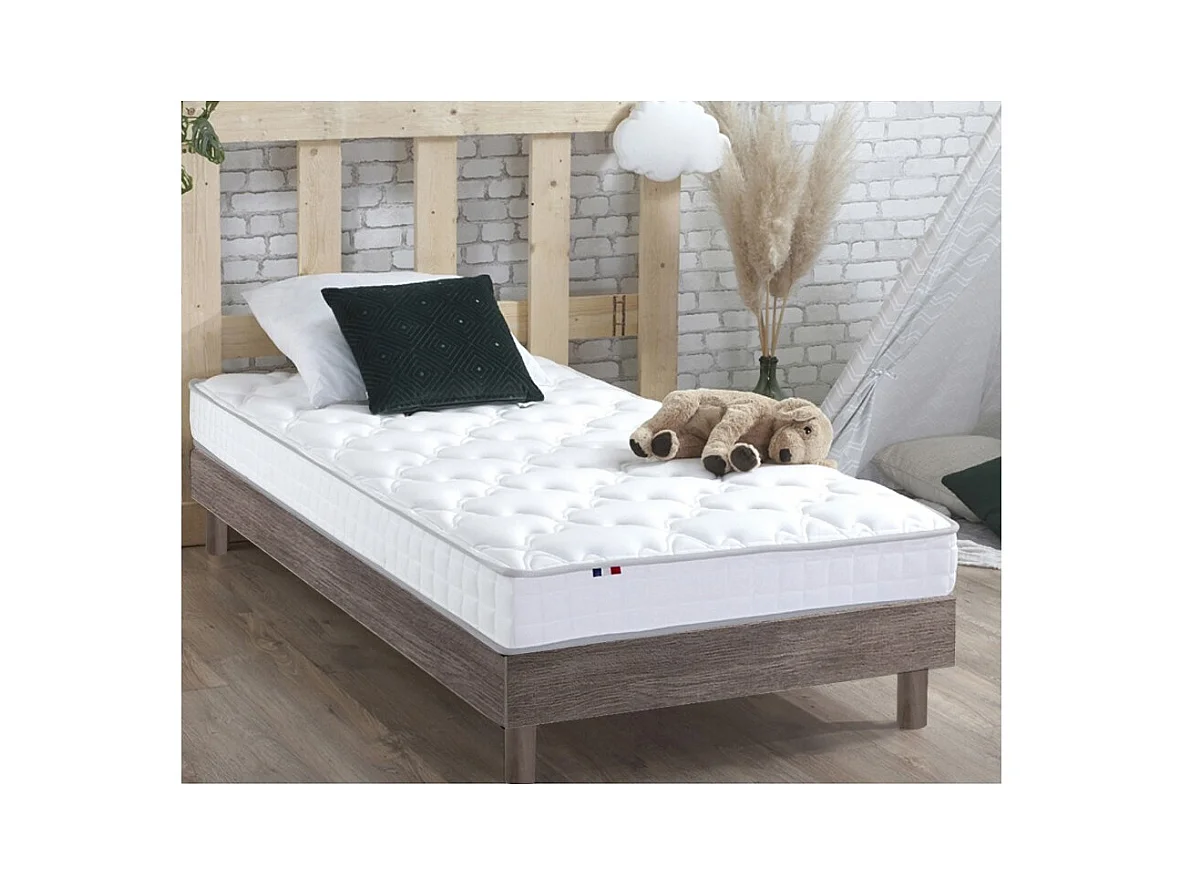 Ensemble matelas mousse HR + latex avec sommier en kit pratique Couleur - Chêne gris, Dimensions - 90 x 190 cm