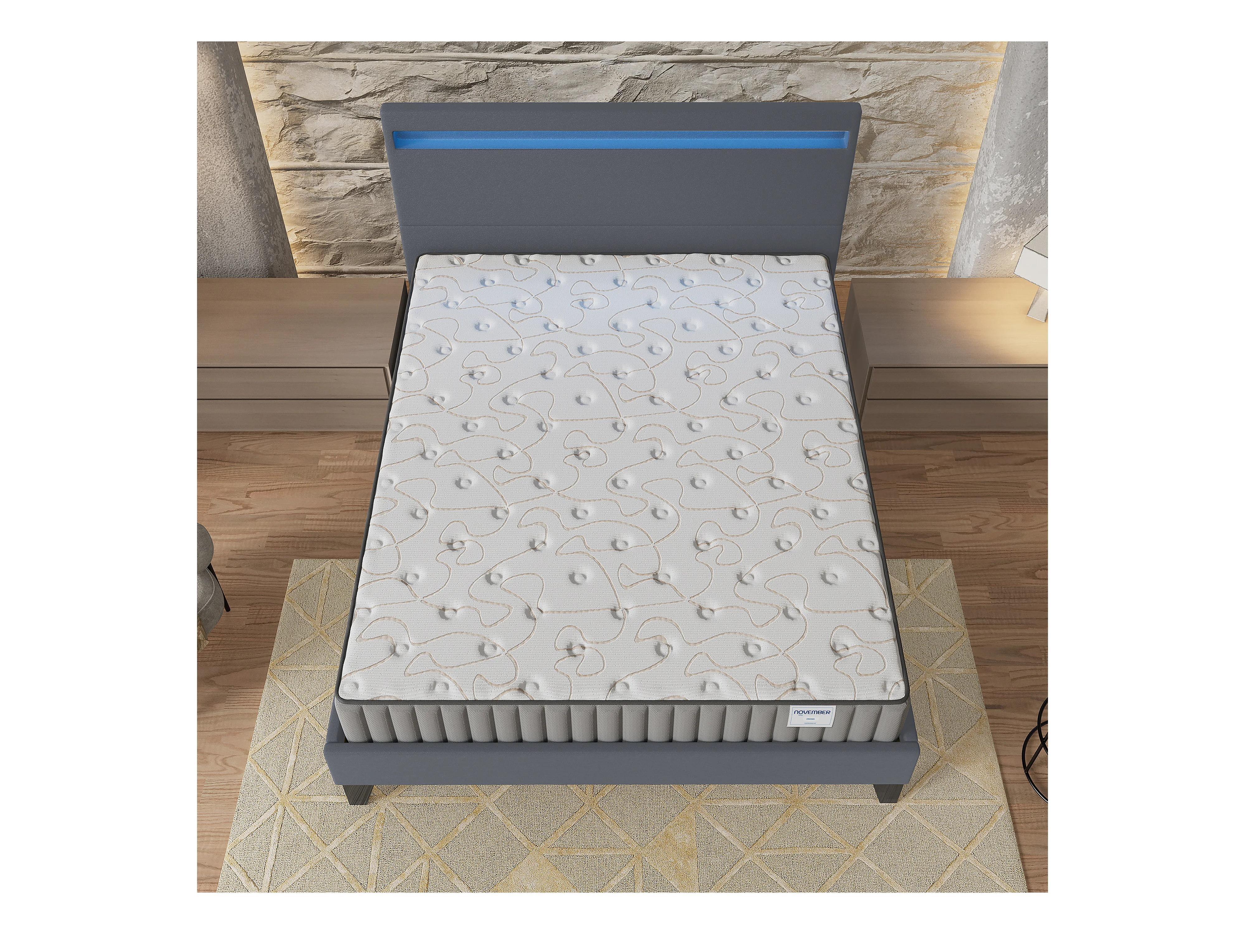 Ensemble Matelas + lit 120x190 cm, Matelas 16cm mousse, accueil mémoire de forme, lit à tête de lit LED similicuir gris