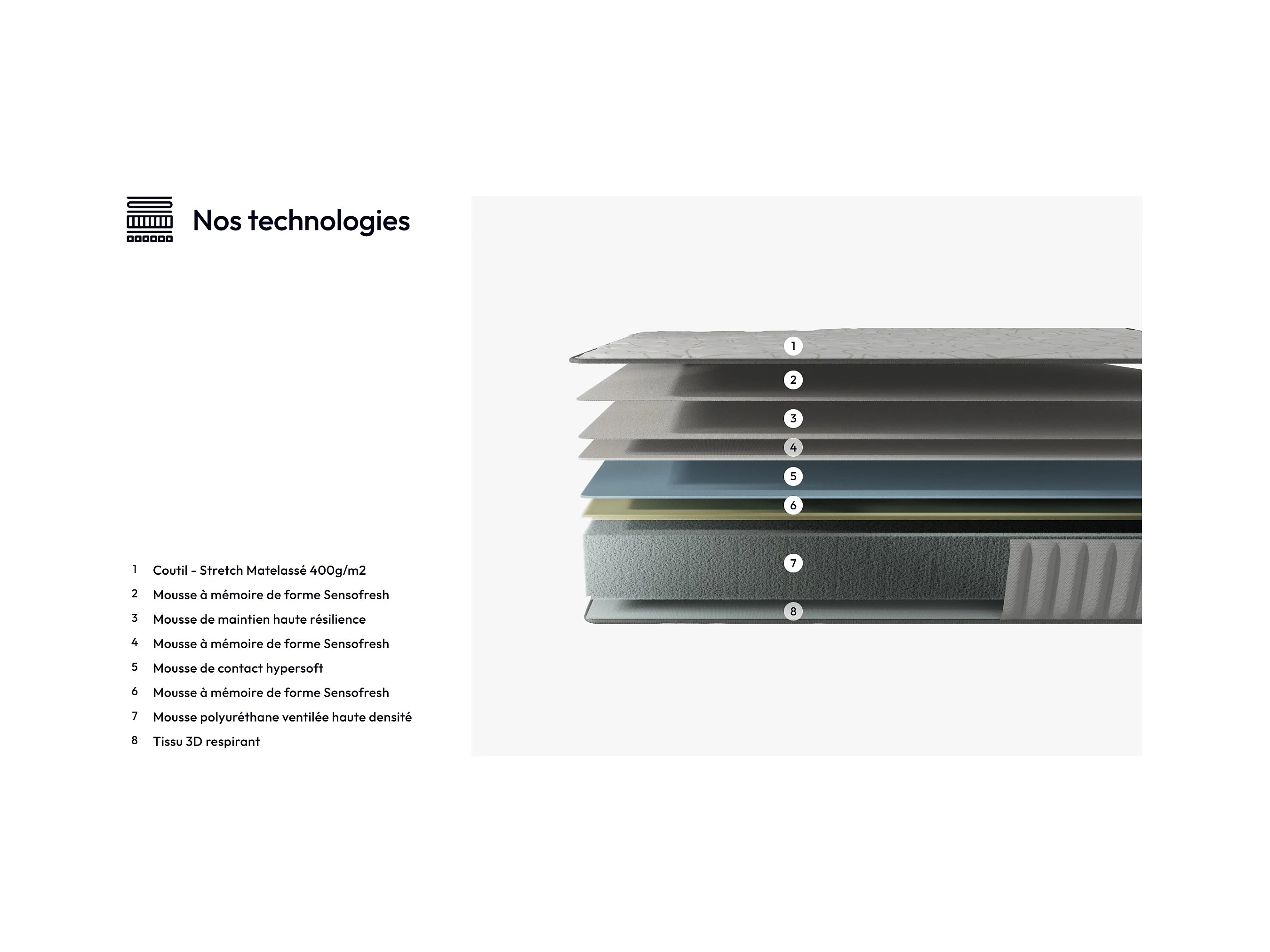 Ensemble Matelas + lit 140x200 cm, Matelas 22cm mousse, accueil mémoire de forme, lit à tête de lit LED similicuir noir