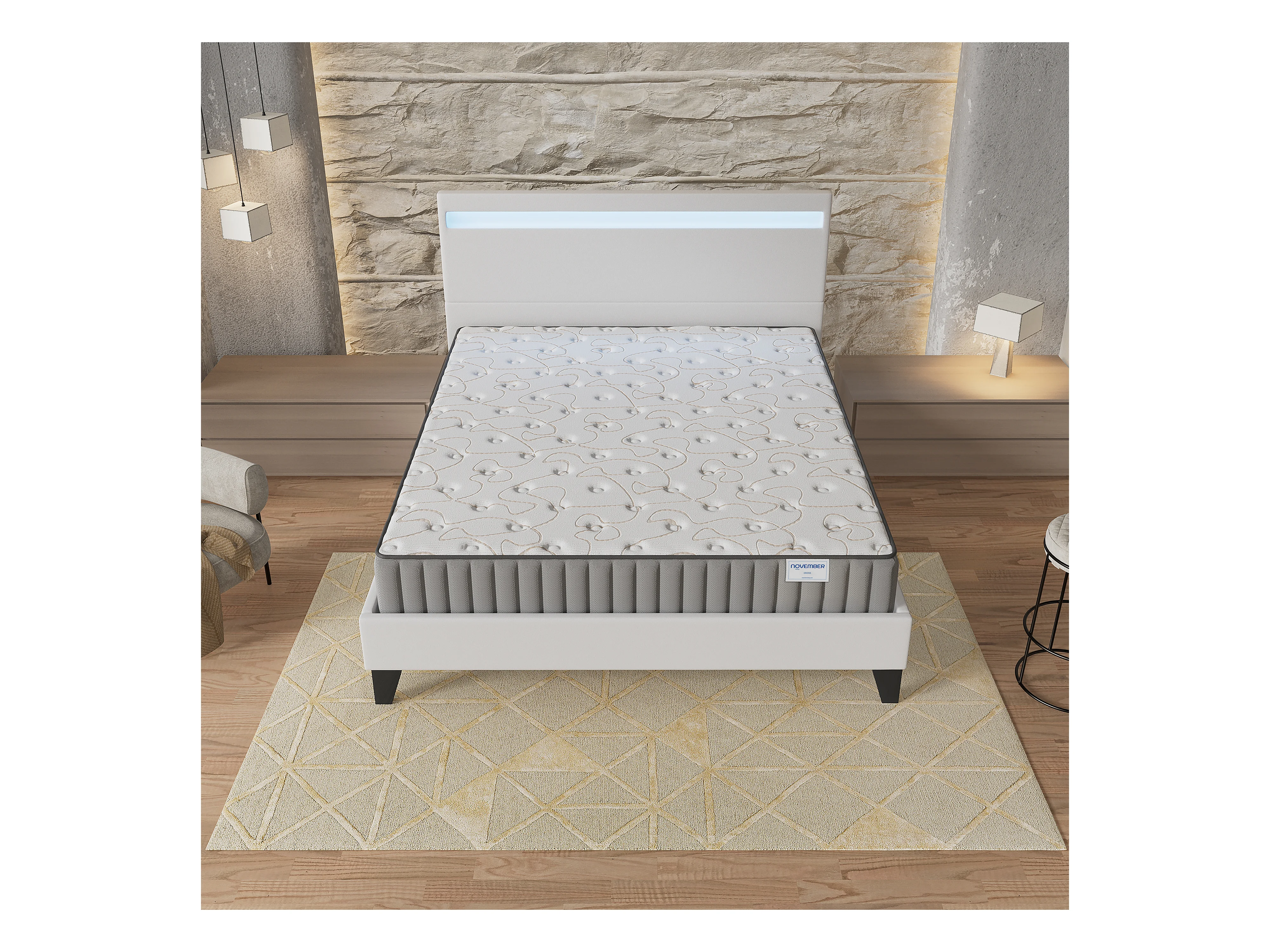 Ensemble Matelas + lit 140x200 cm, Matelas 16cm mousse, accueil mémoire de forme, lit à tête de lit LED similicuir blanc