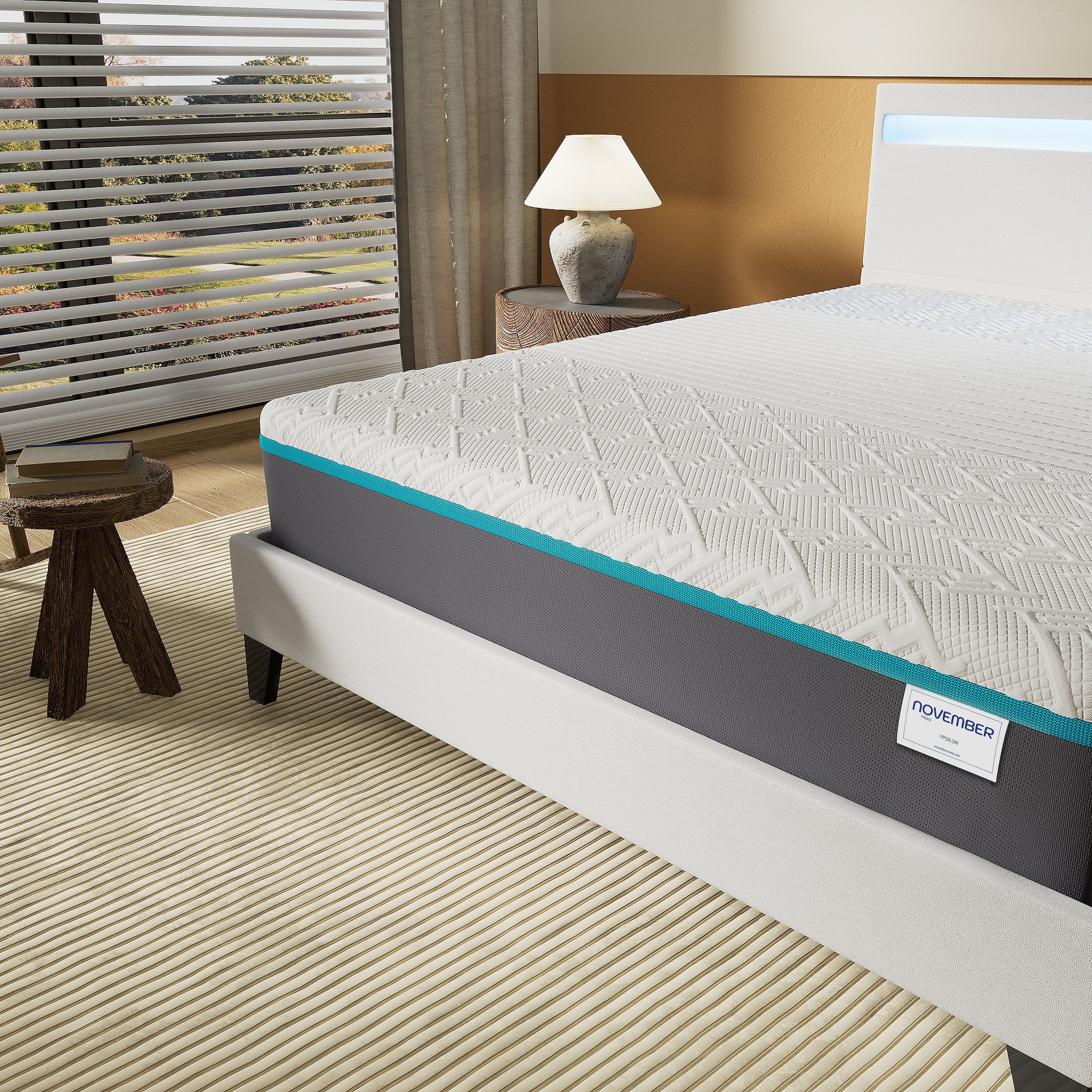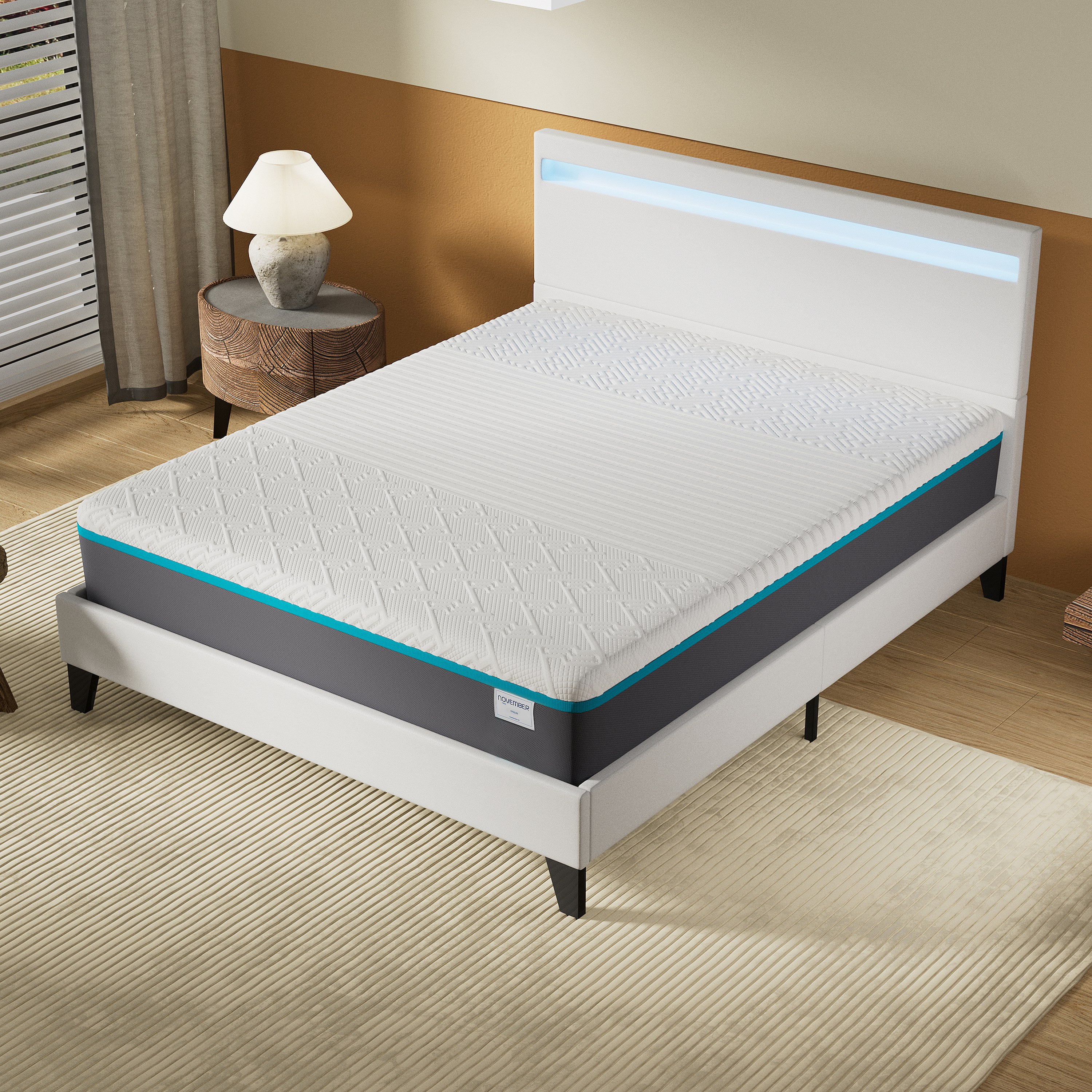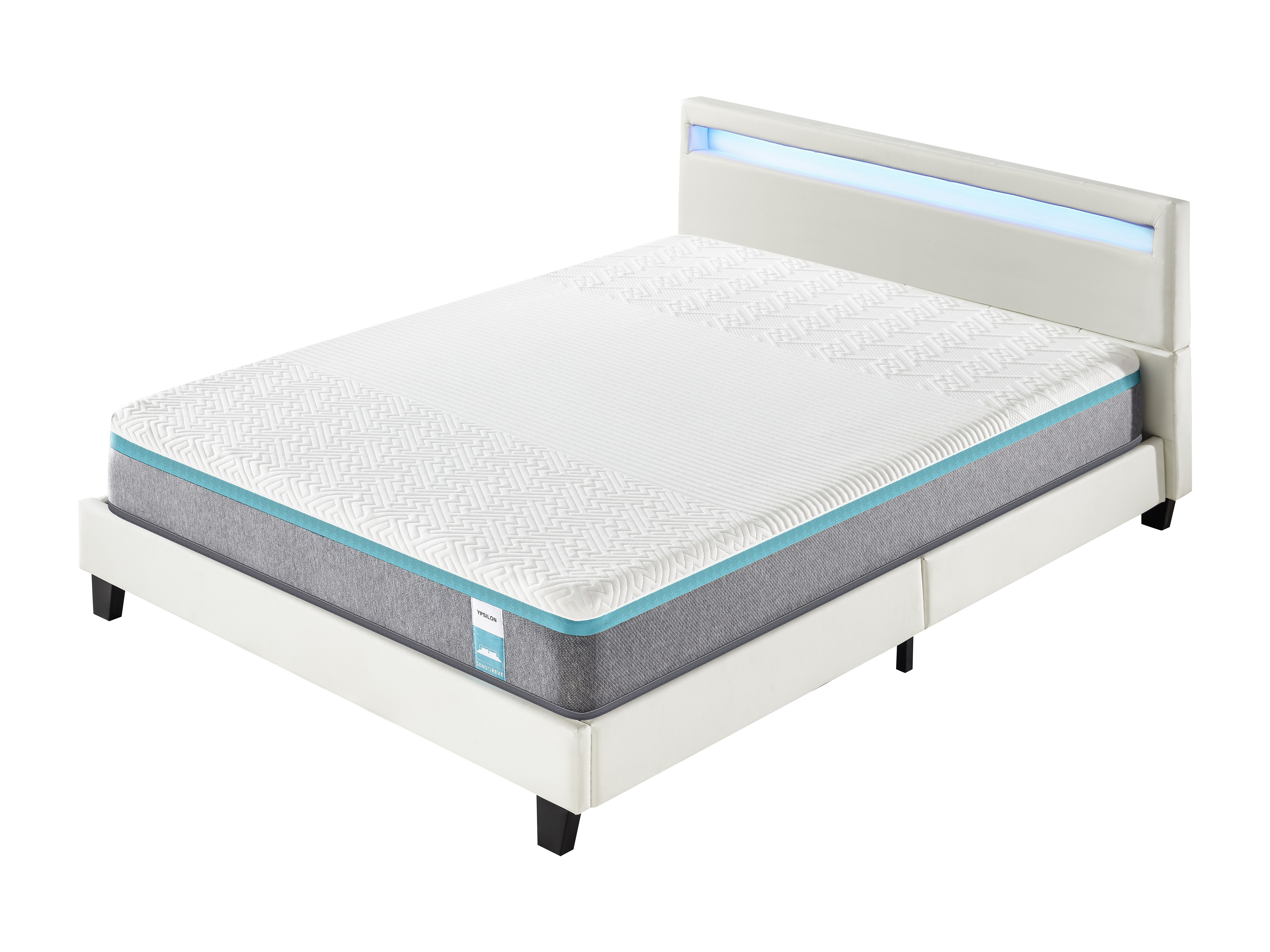 Ensemble Matelas Mousse + Lit Avec Tête De Lit 140x200cm Epaisseur 28cm Equilibré Accueil Latex