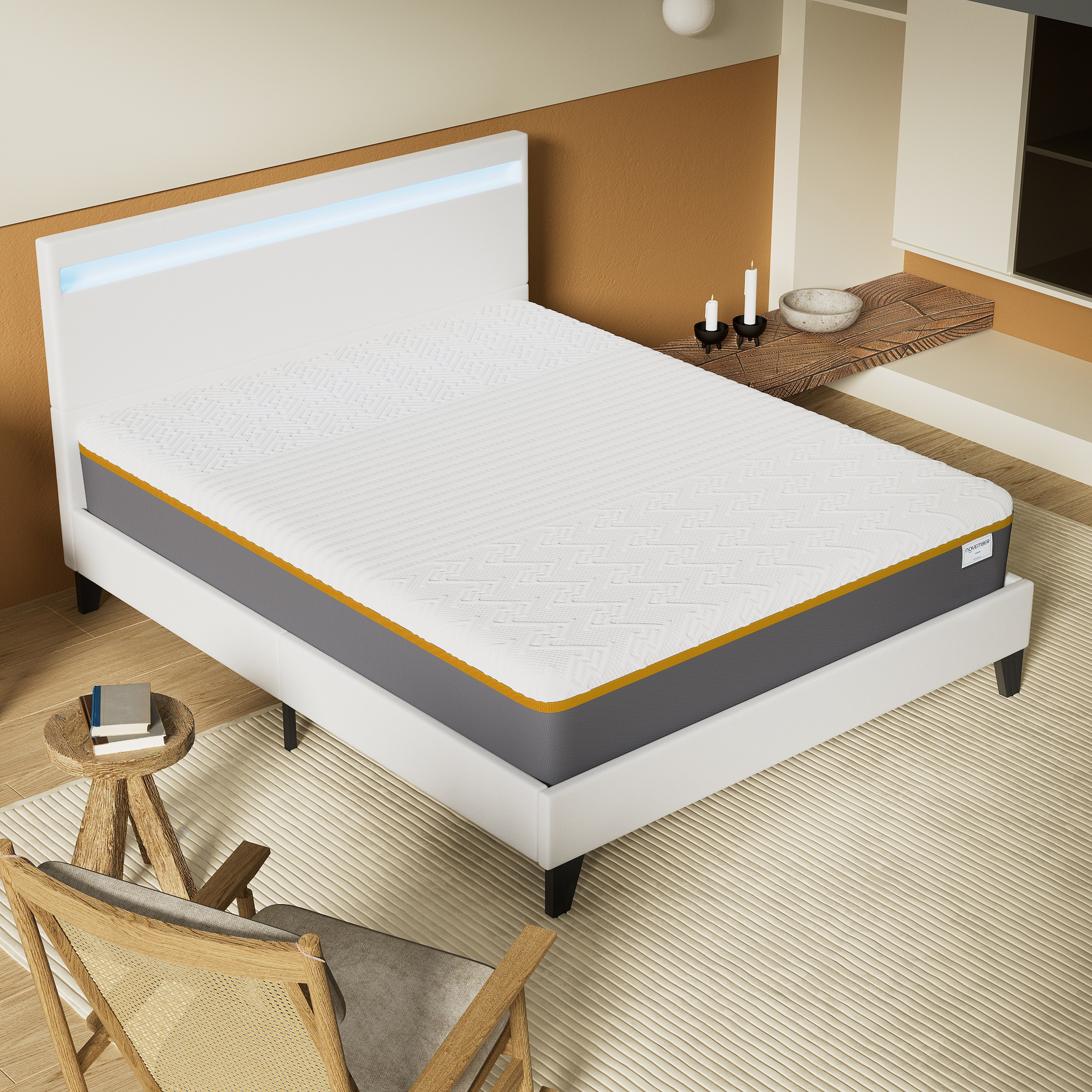Ensemble Matelas Mousse + Lit Avec Tête De Lit 140x200cm Epaisseur 28cm Ferme Accueil Latex Naturel
