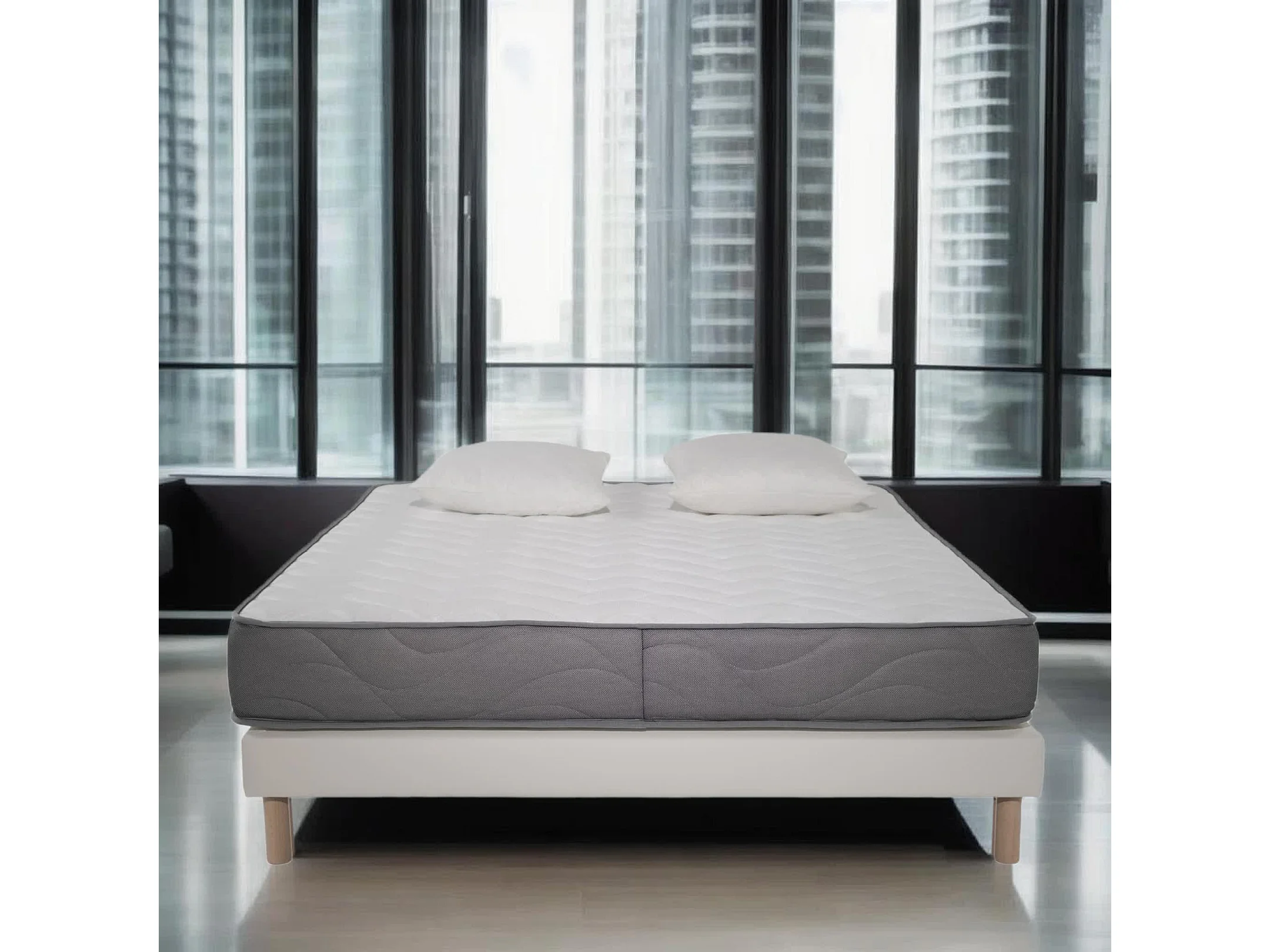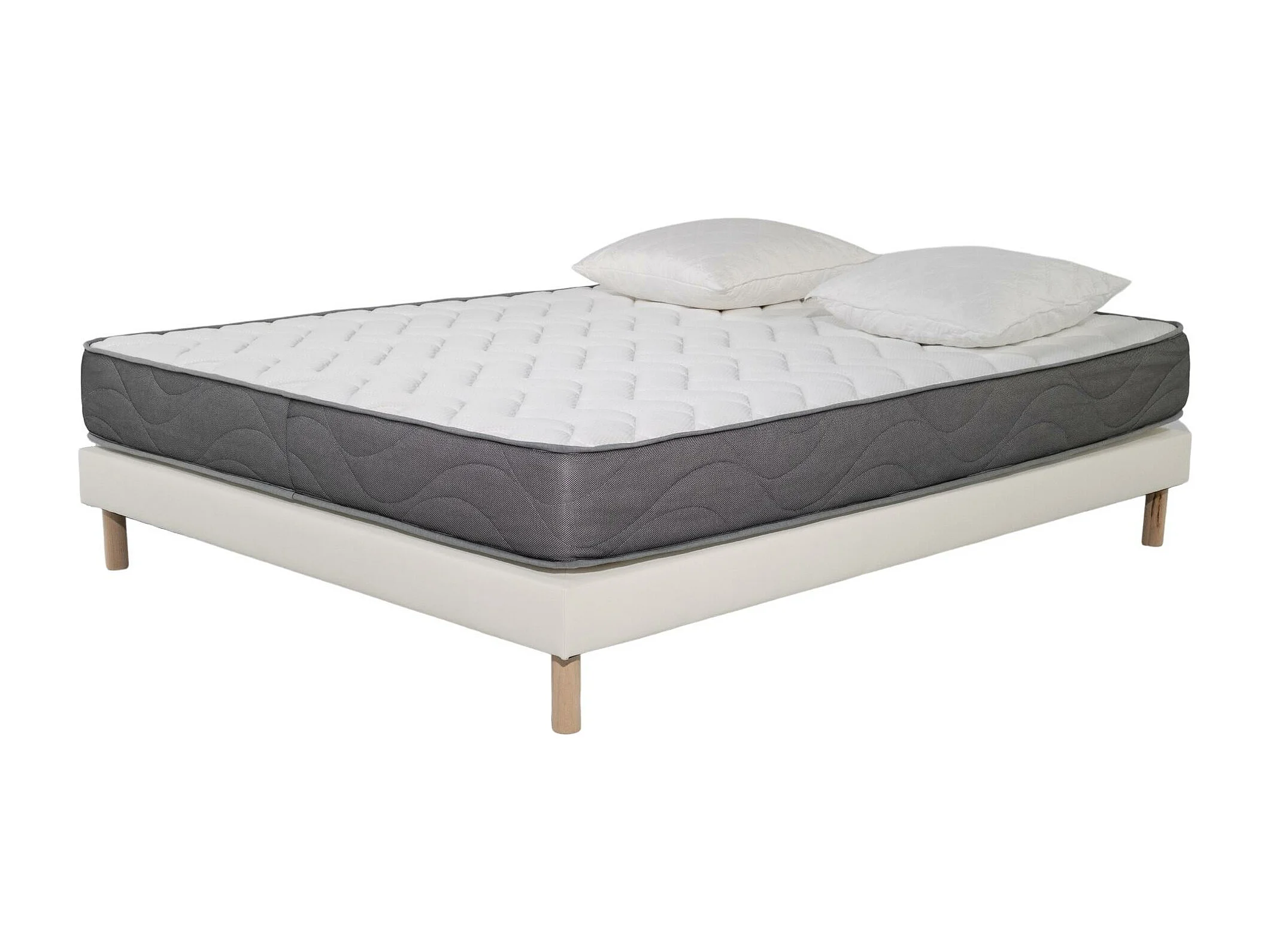 Ensemble Matelas Mousse Luxe - 160x200 et 2 Oreillers mémoire 60x60 - Sommier tapissier Blanc