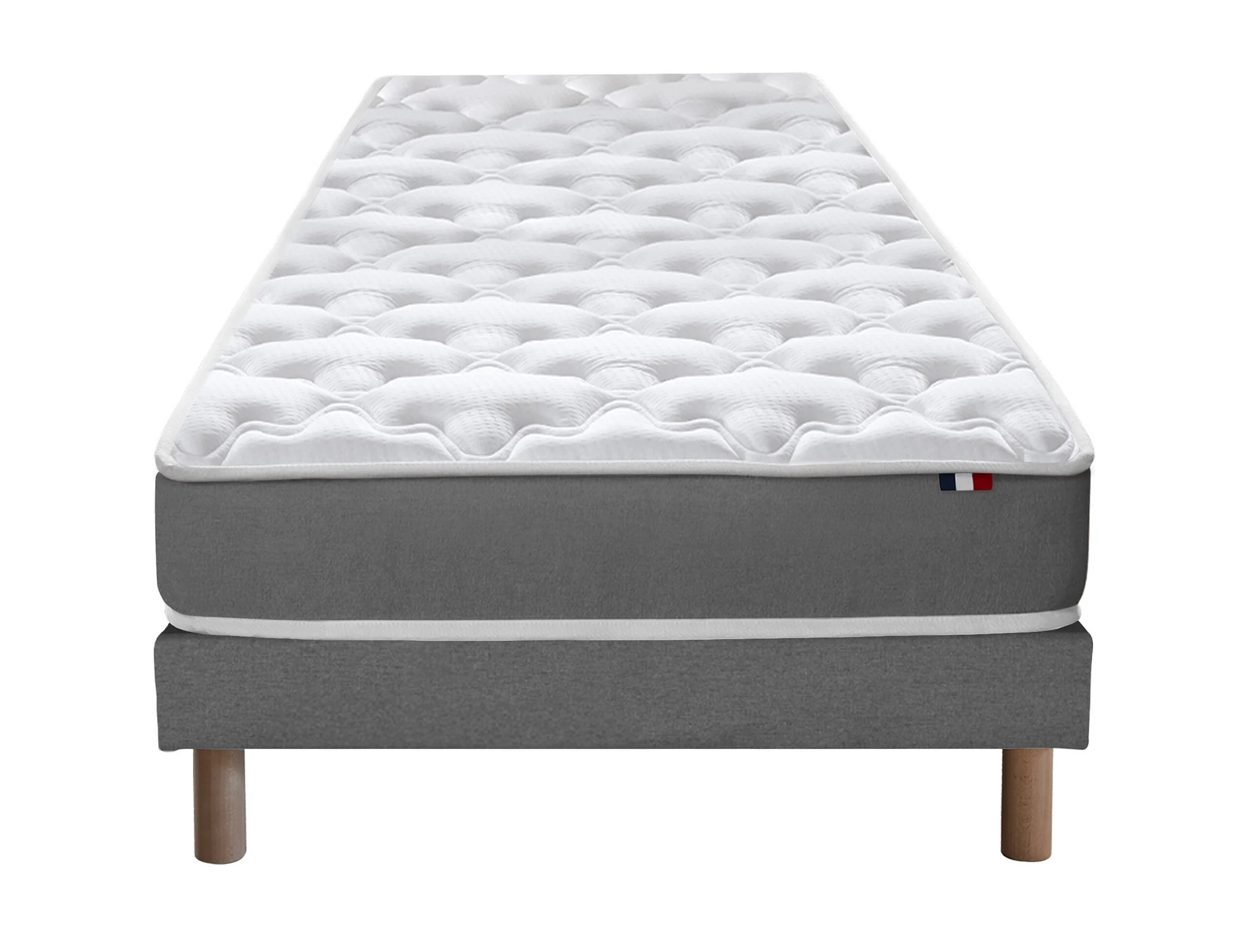 Ensemble matelas mousse réversible STRATUS et sommier - confort français Dimensions - 90 x 190 cm, Sommier - Gris chiné