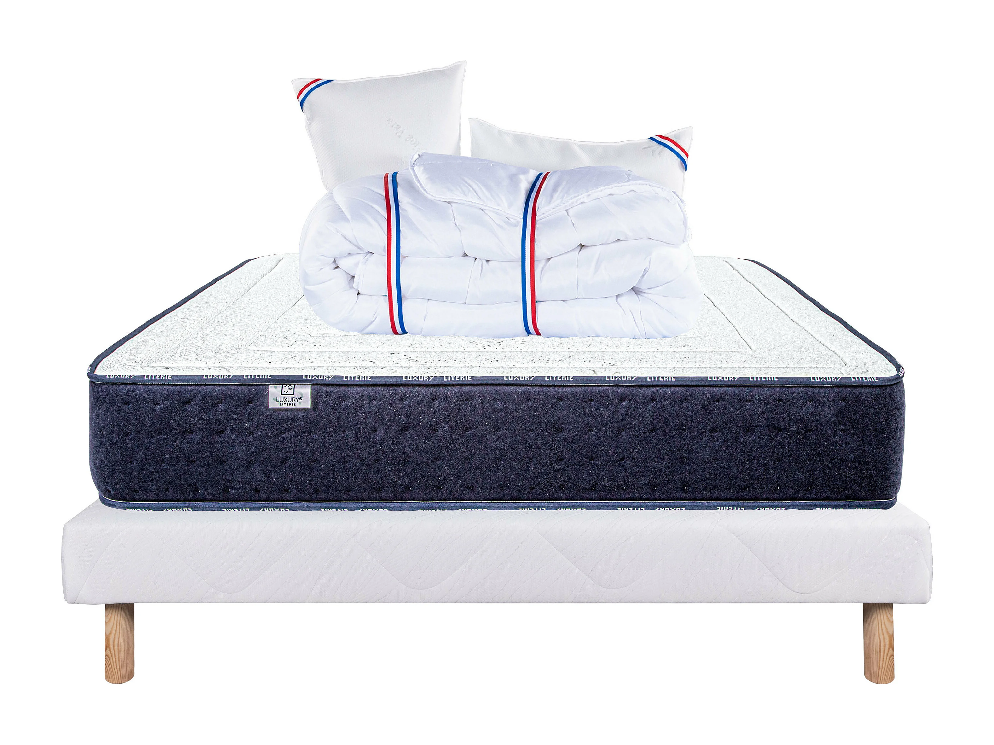 Ensemble Matelas 140x190 cm, Nuage, 24 cm + sommier blanc + 2 oreillers + couette