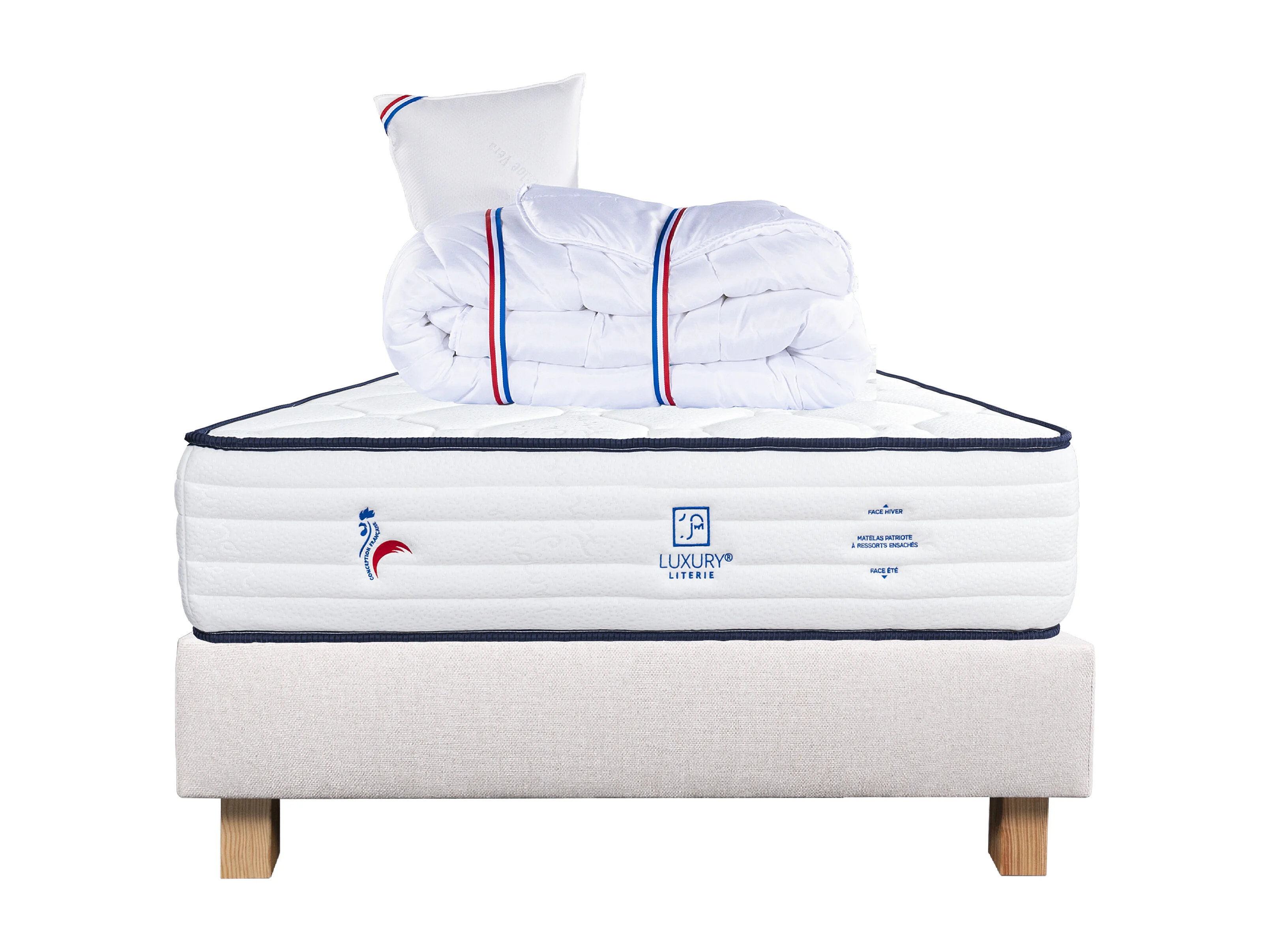 Ensemble Matelas 90x190 cm, Patriote, 27 cm + sommier beige + oreiller + couette