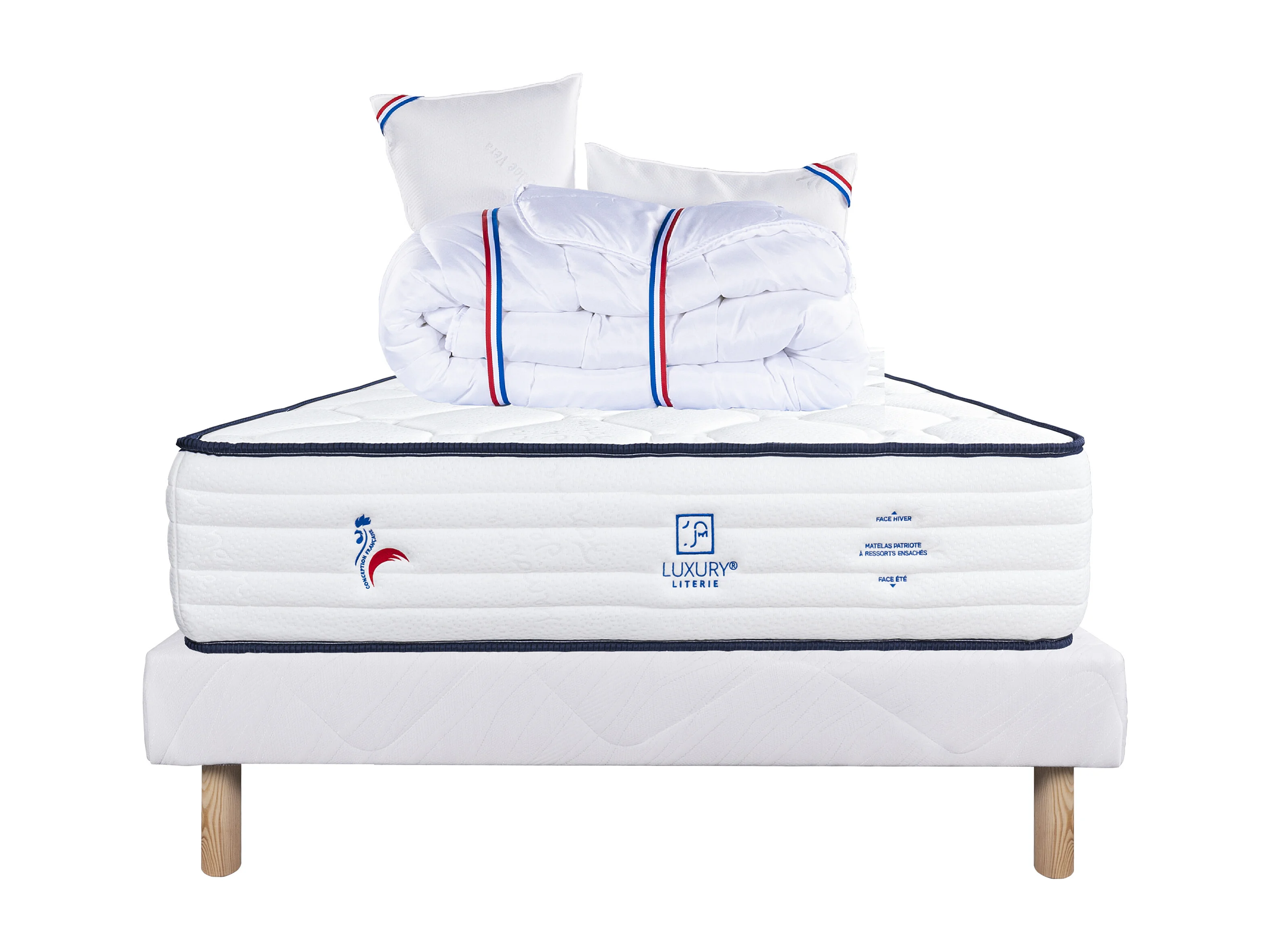 Ensemble Matelas 160x200 cm, Patriote, 27 cm + sommier blanc + 2 oreillers + couette