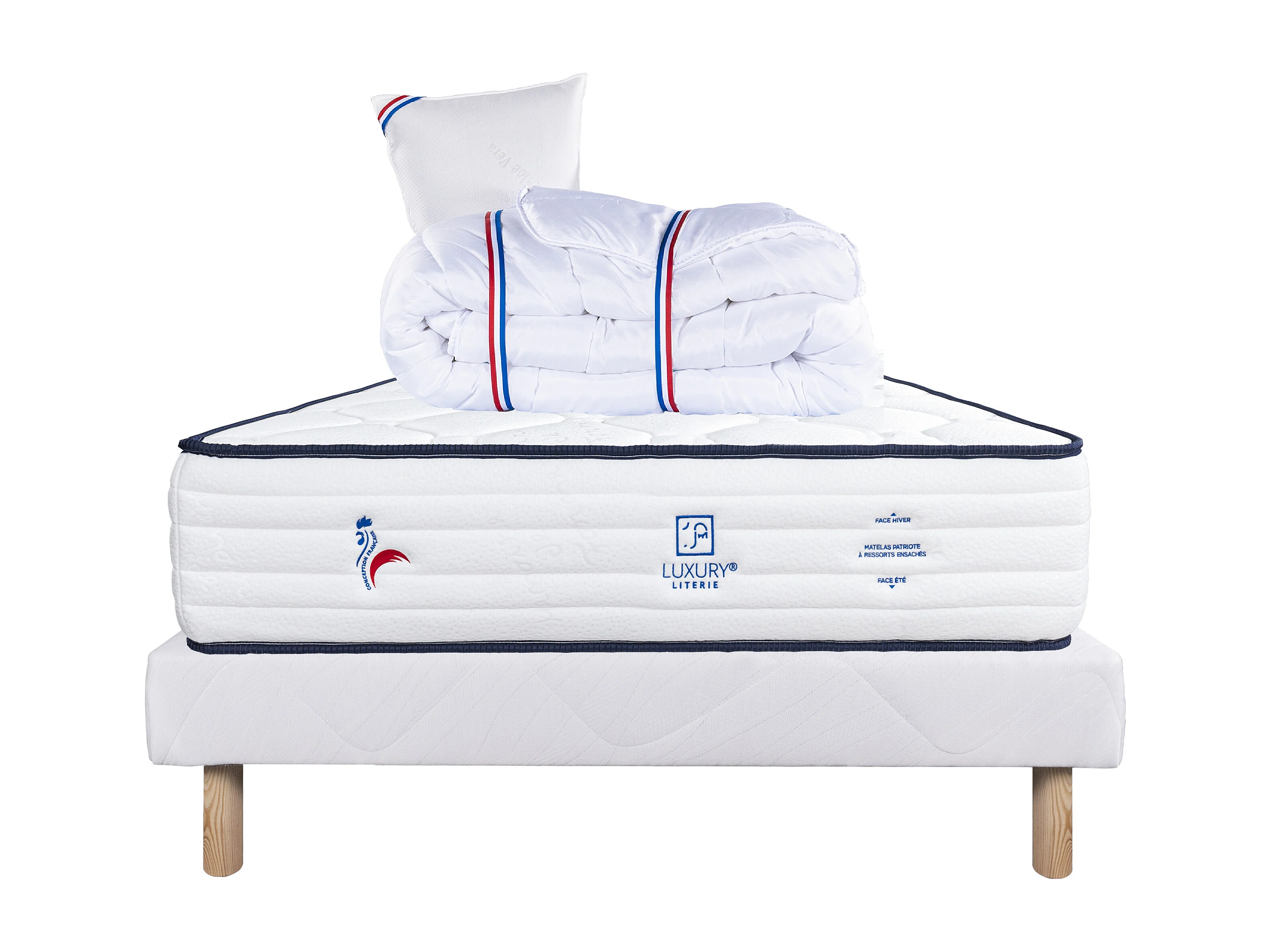 Ensemble Matelas 90x190 cm, Patriote, 27 cm + sommier blanc + oreiller + couette
