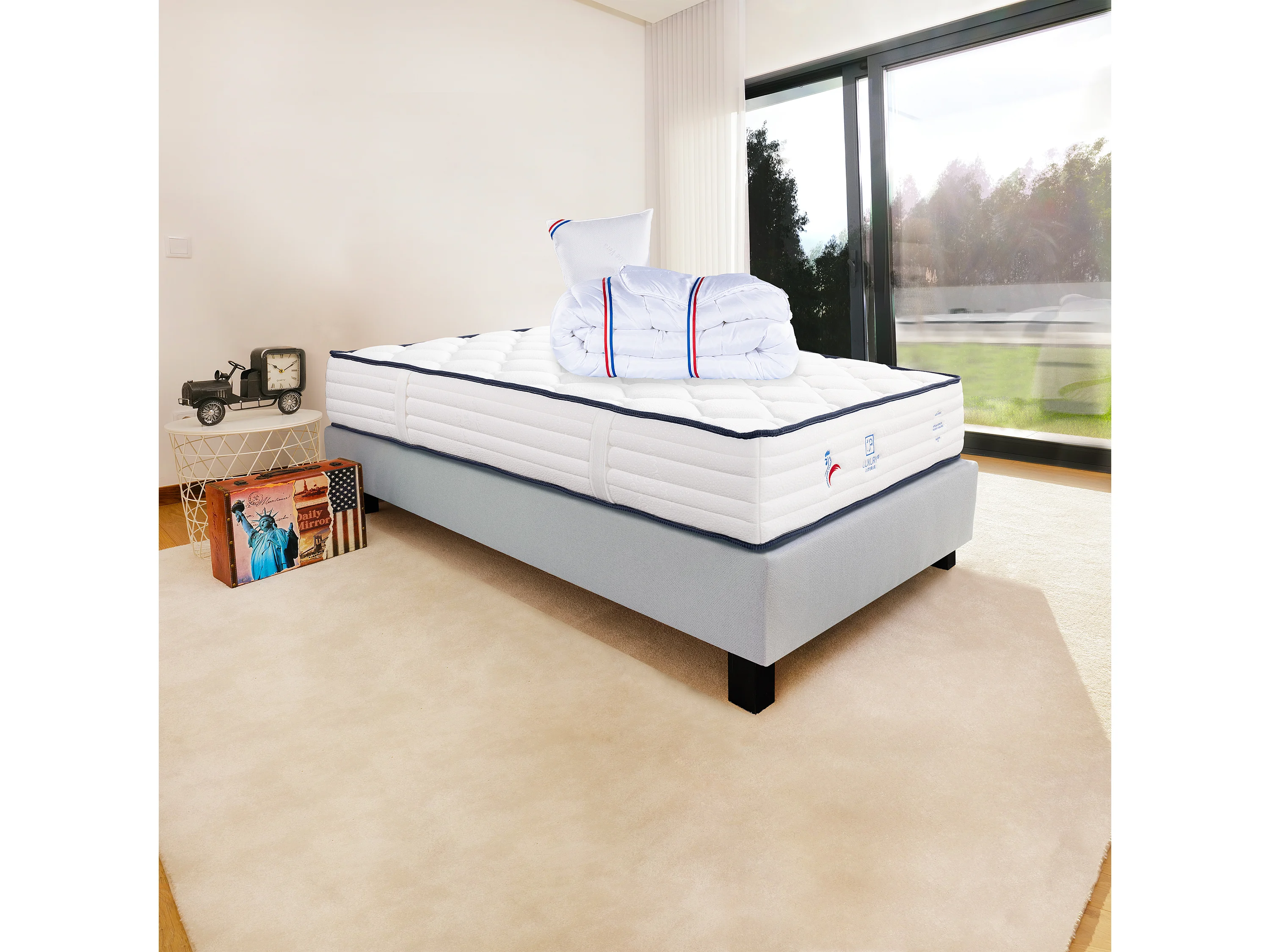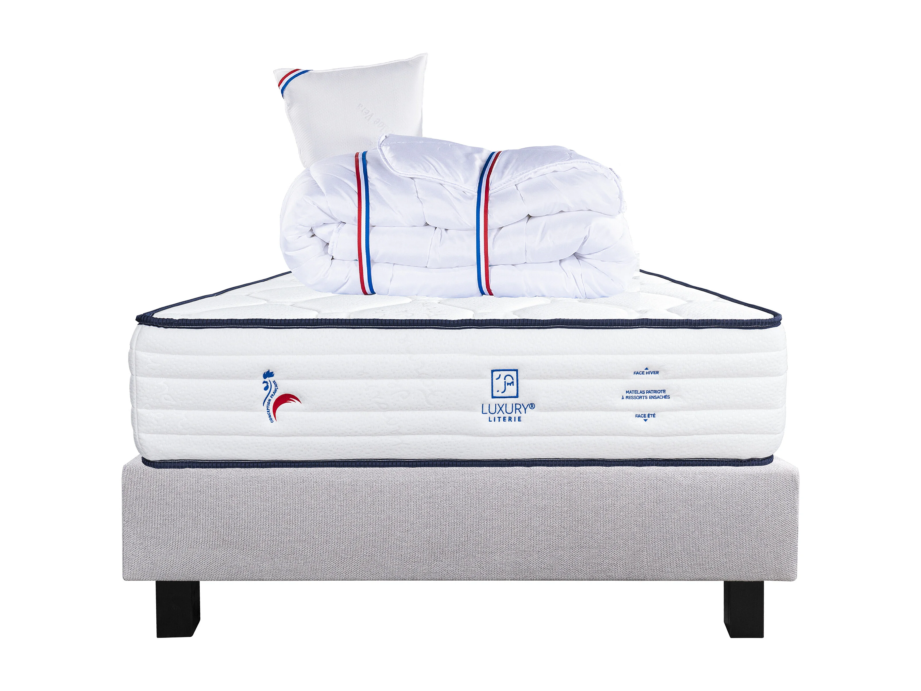 Ensemble Matelas 90x190 cm, Patriote, 27 cm + sommier gris + oreiller + couette