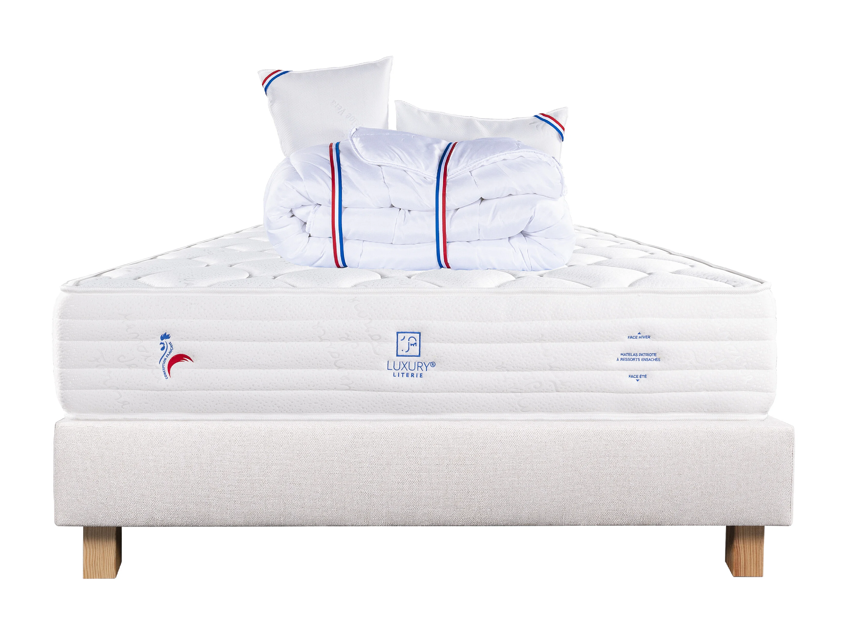 Ensemble Matelas 140x190 cm, Patriote Mousse, 27 cm + sommier beige + 2 oreillers +couette