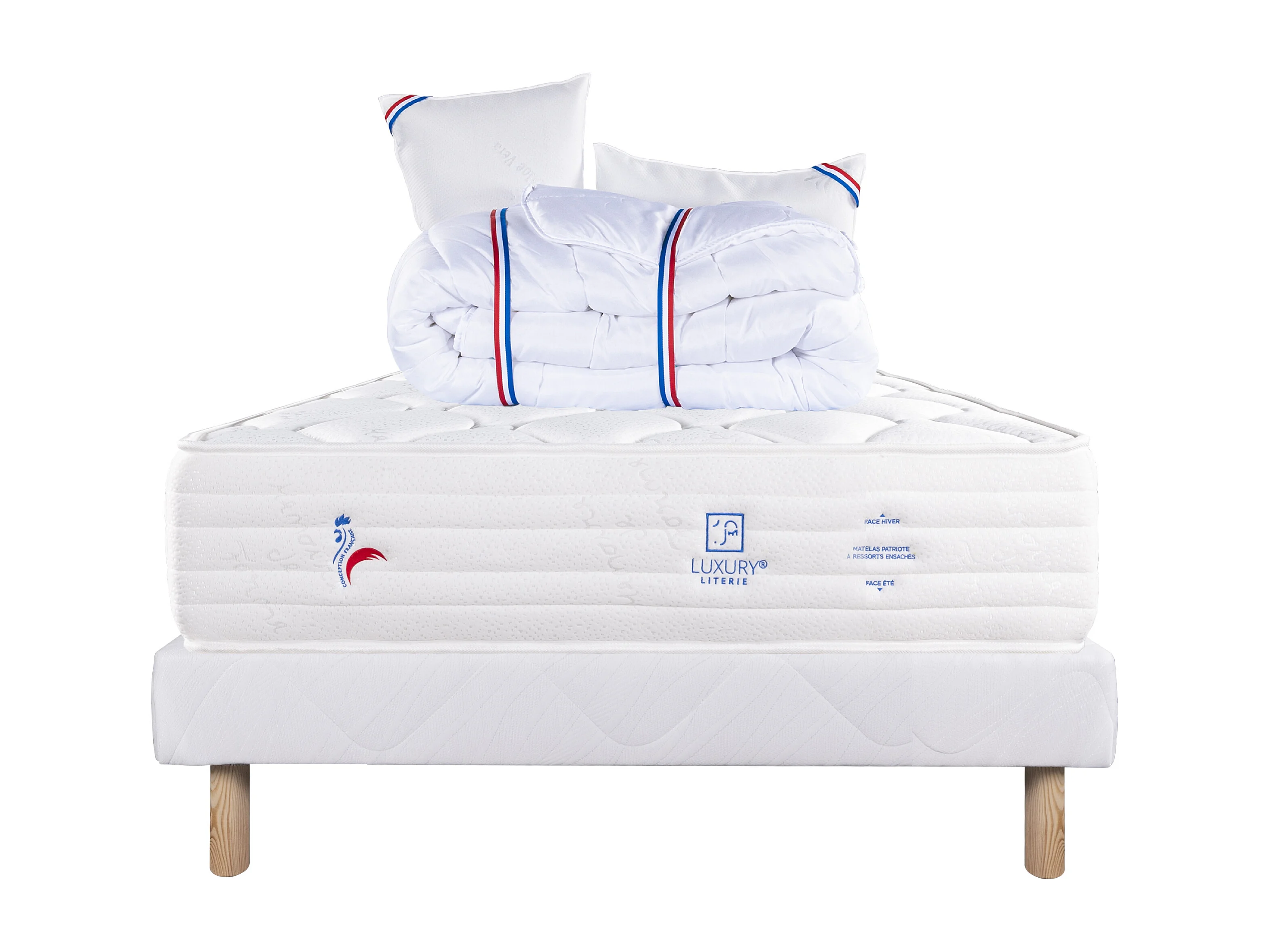Ensemble Matelas 140x190 cm, Patriote Mousse, 27 cm + sommier blanc + 2 oreillers +couette