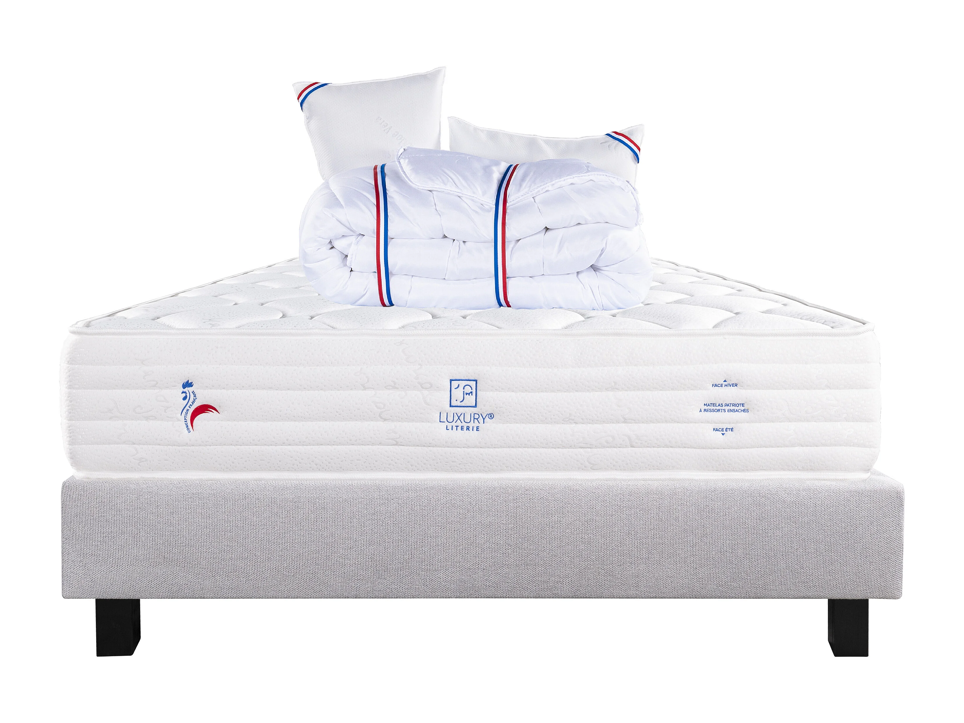 Ensemble Matelas 140x190 cm, Patriote Mousse, 27 cm + sommier gris + 2 oreillers + couette