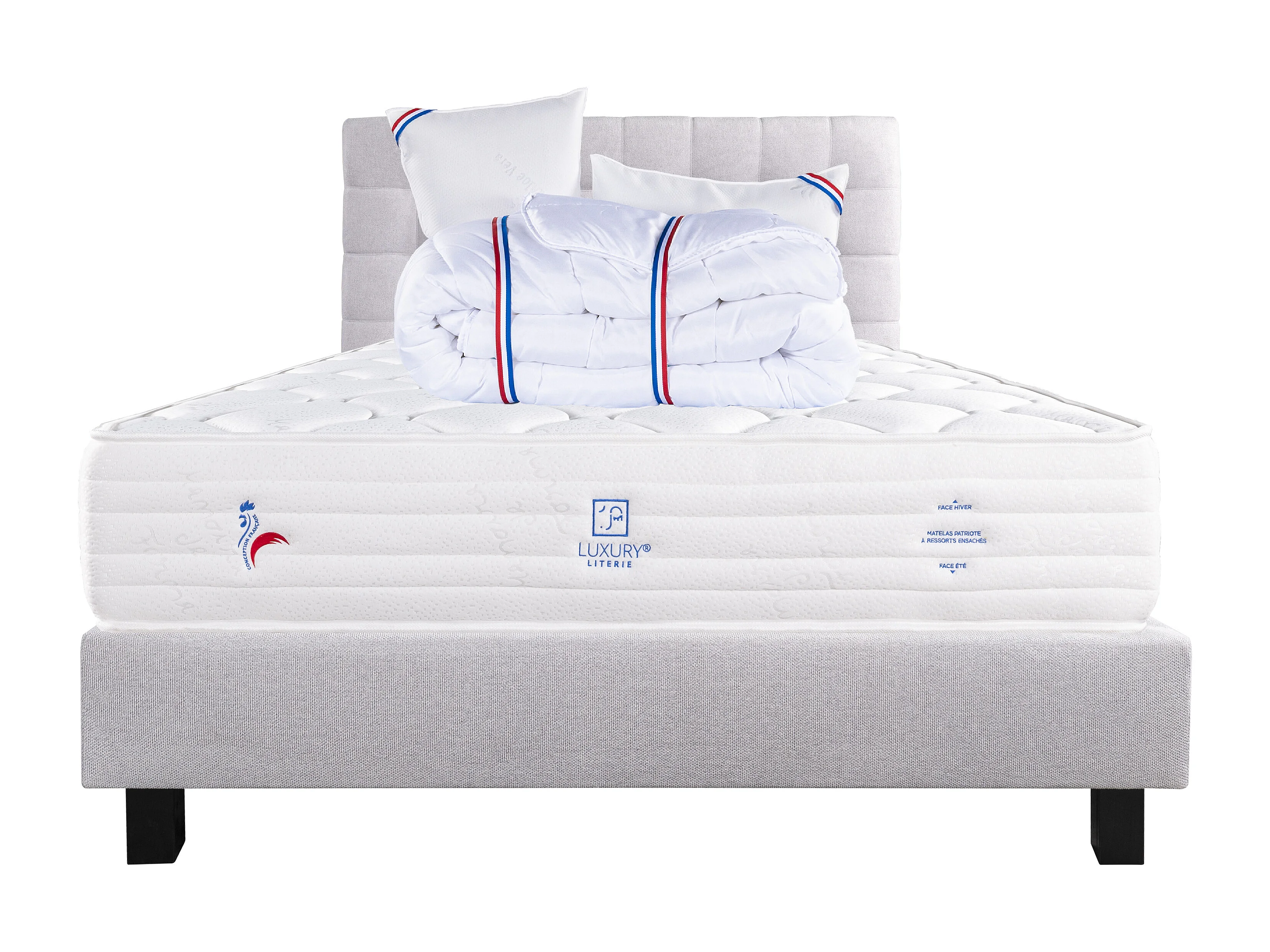 Ensemble Matelas 160x200 cm, Patriote Mousse, 27 cm+sommier gris+2 oreillers+couette+TDL