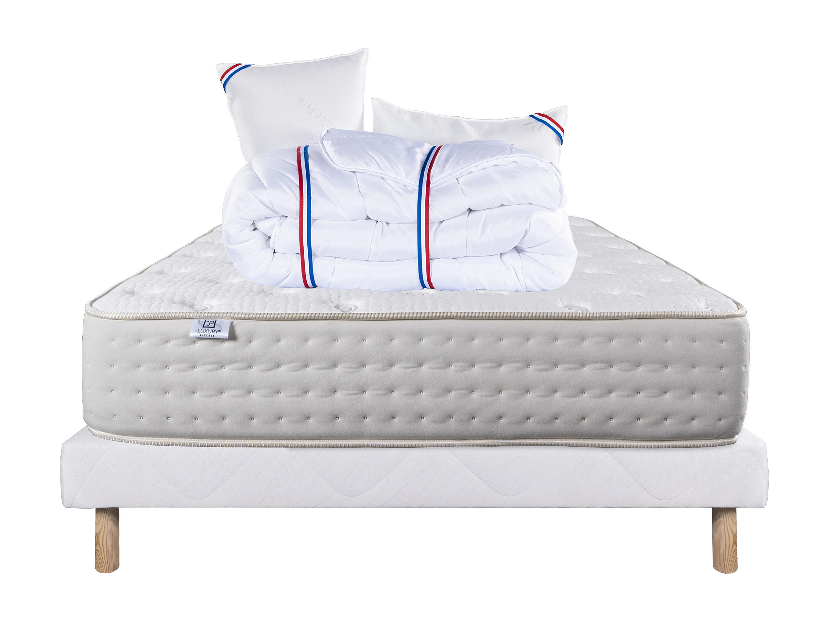 Ensemble Matelas 140x200 cm, Purlux, 26 cm + sommier blanc + 2 oreillers + couette