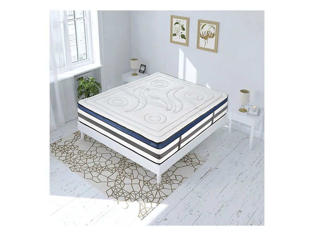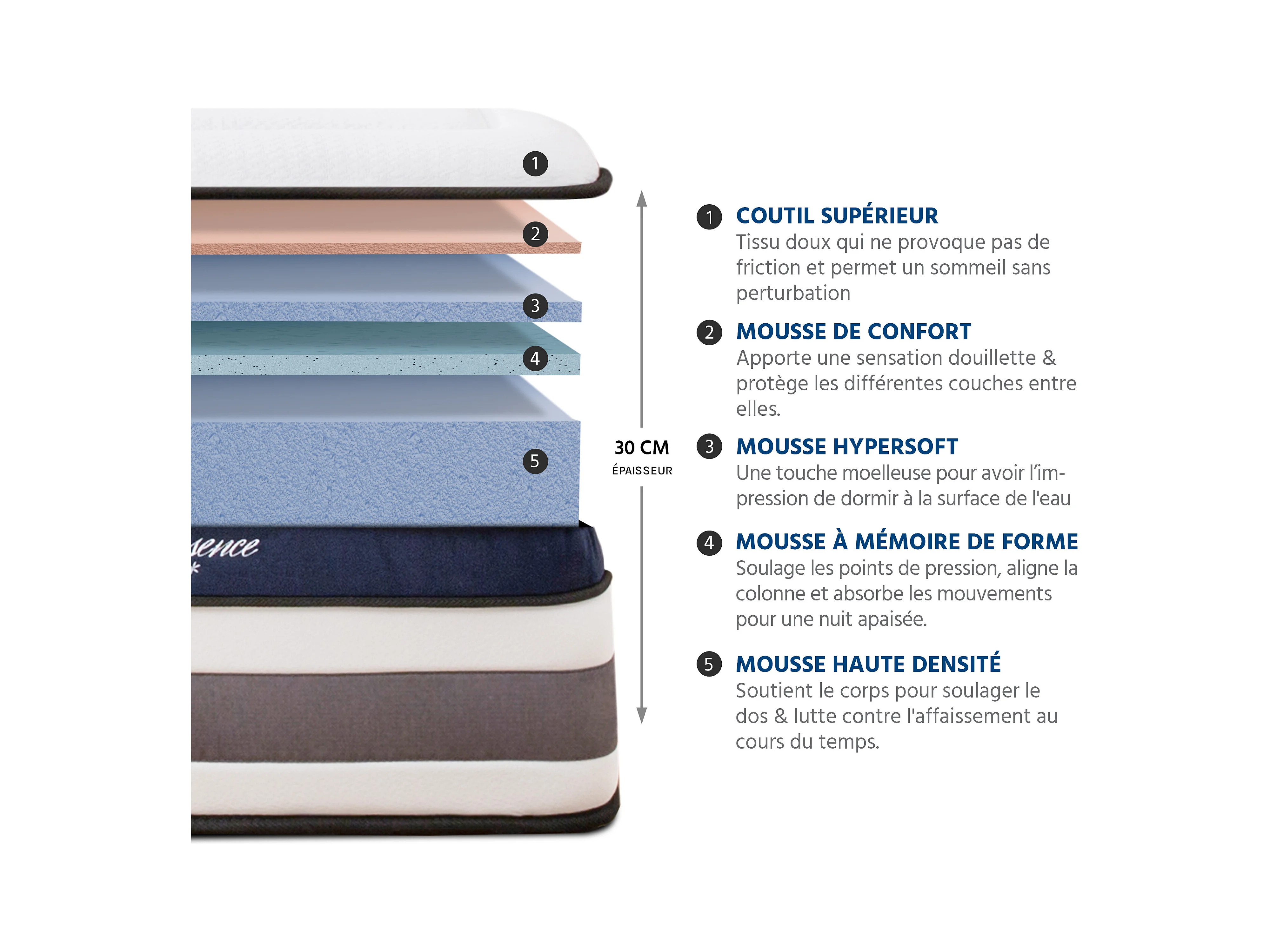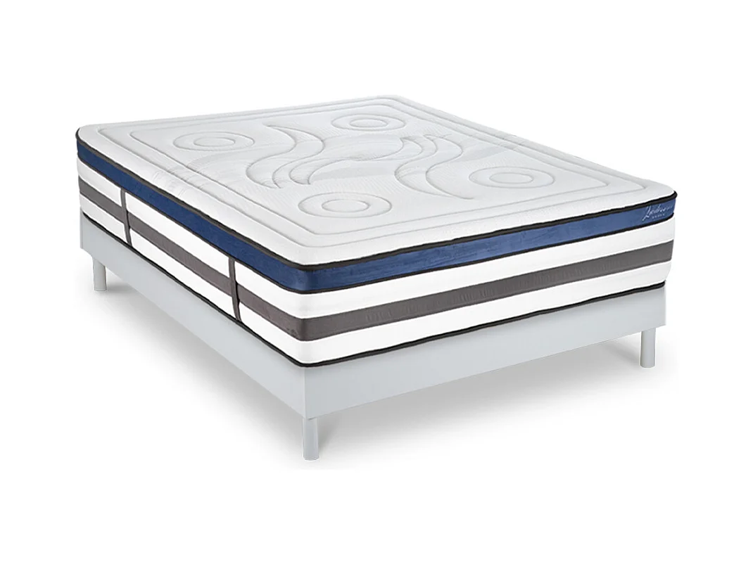 Ensemble Matelas Quintessence Mousse Accueil Mémoire Cocooning 30cm et sommier bois blanc 160x200cm