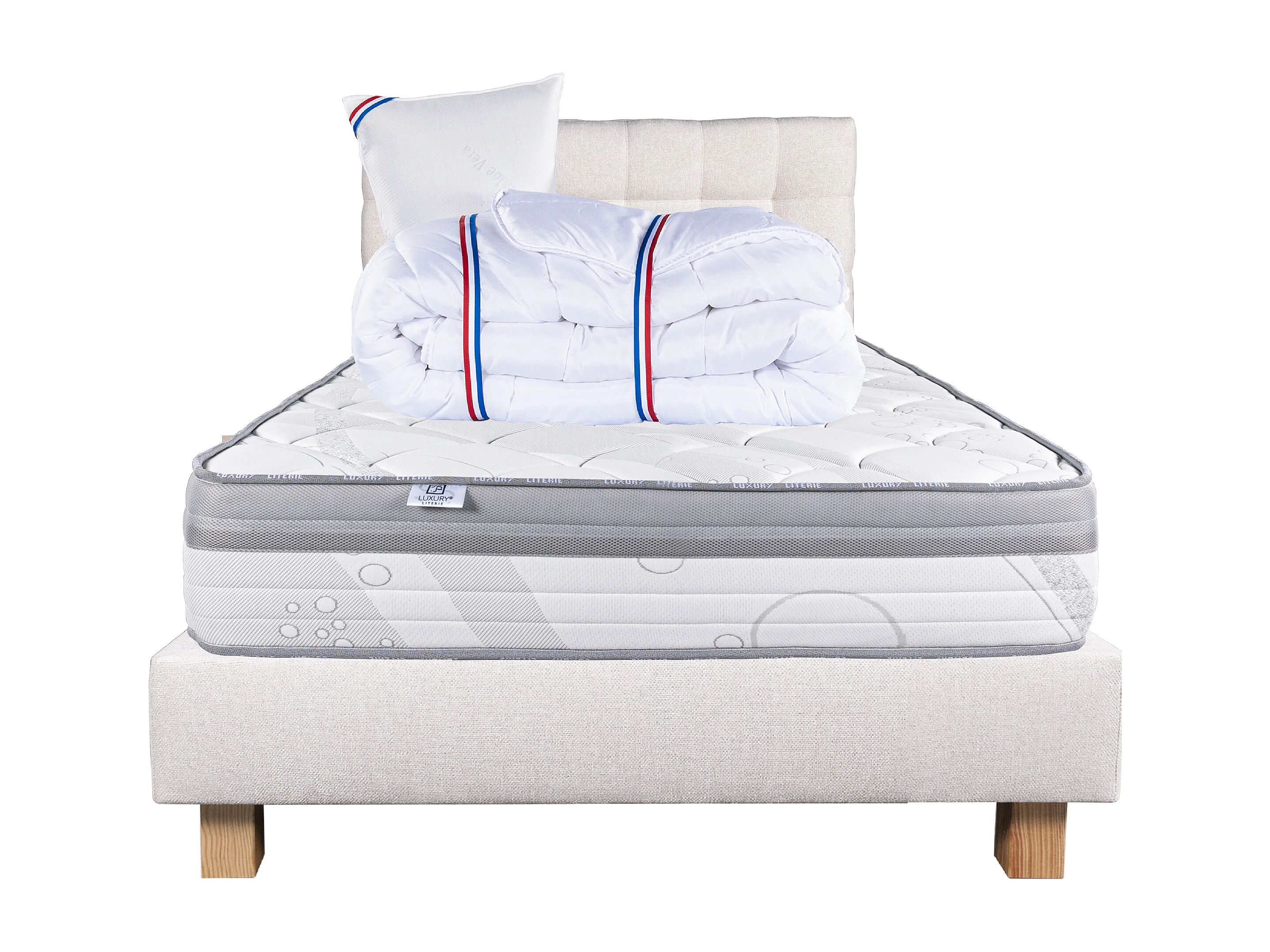 Ensemble Matelas 90x190 cm, Relaxation, 26 cm + sommier beige + oreiller + couette + TDL