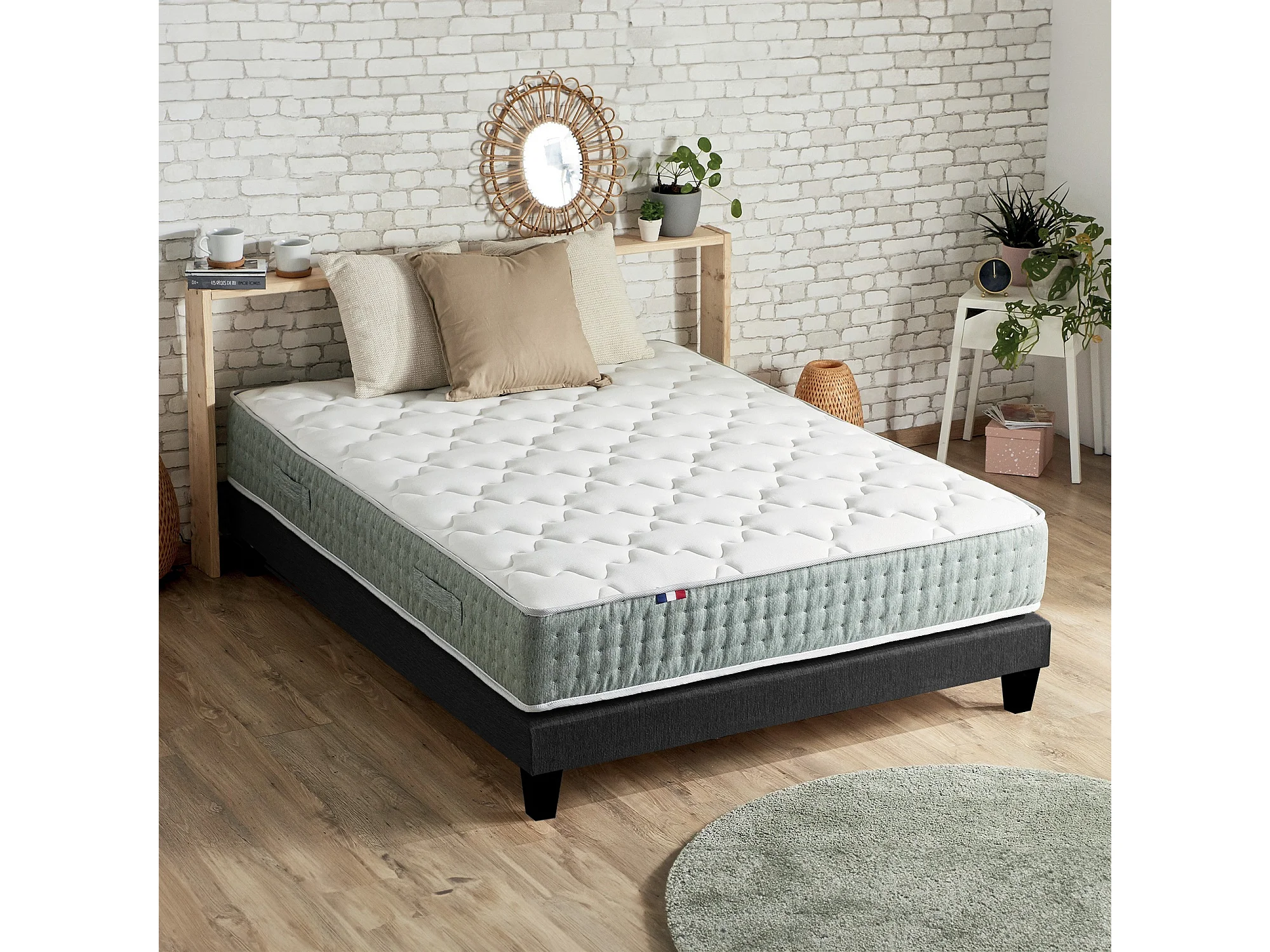 Ensemble matelas à ressorts HYGGE et sommier déco pour un confort optimal Dimensions - 140 x 190 cm, Sommier - Noir