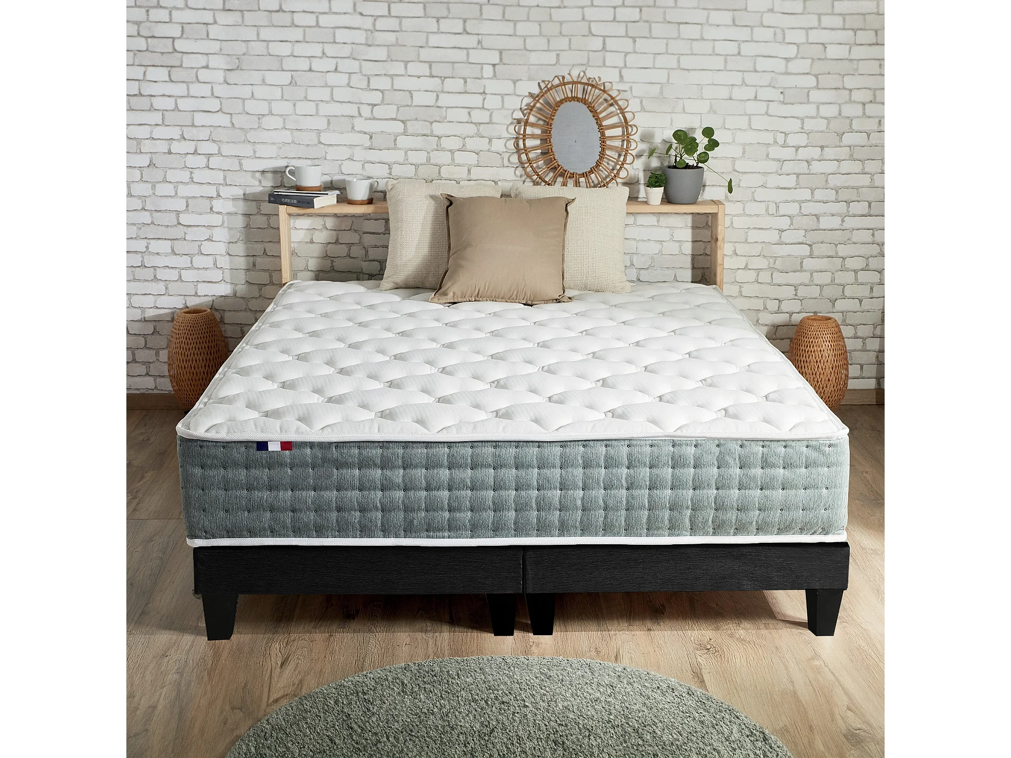 Ensemble matelas à ressorts HYGGE et sommier déco pour un confort optimal Dimensions - 2x90 x 200 cm, Sommier - Noir