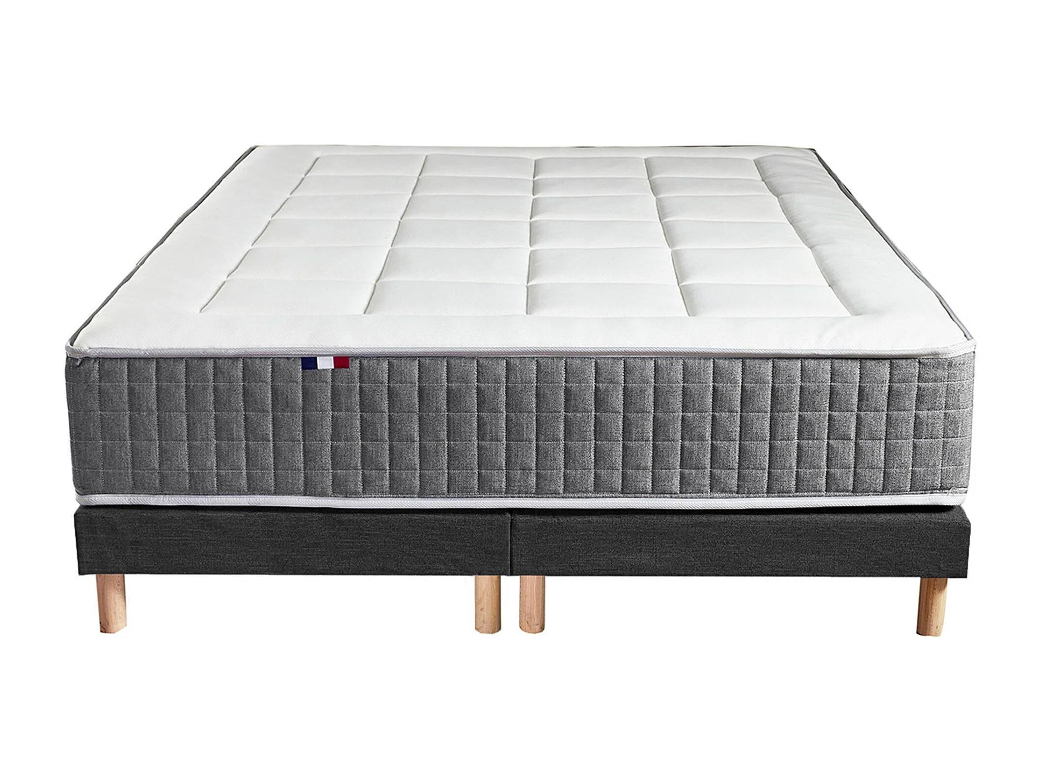 Ensemble Matelas Ressort 7 zones H.28cm + Sommier + couette + oreillers Fabriqué en France MAX Dimensions - 2x80 x 200 cm, Sommier - Noir